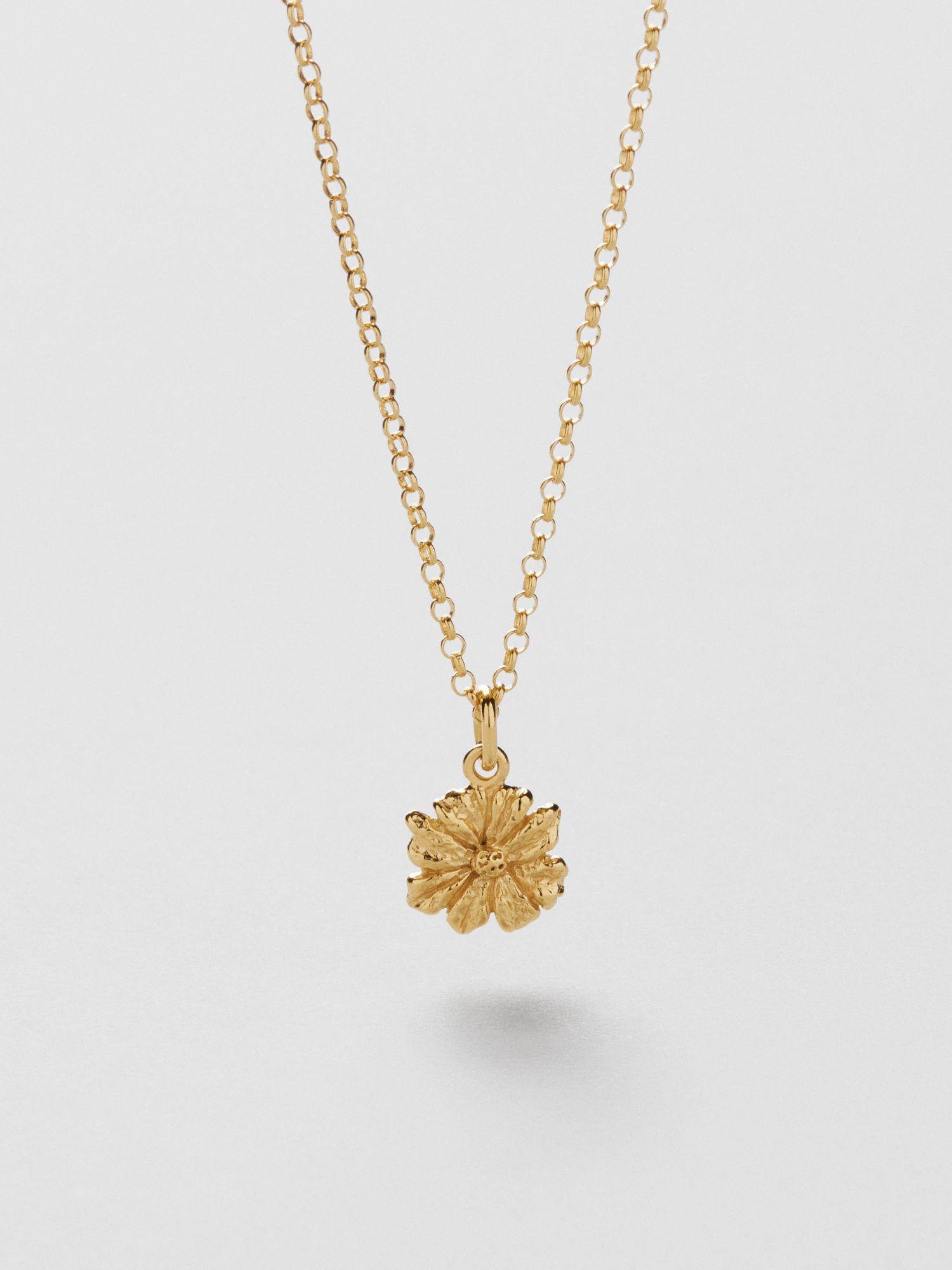 Flower necklace with a vintage-inspired cosmos flower in genuine 925 sterling silver. The gold necklace is plated with genuine 24K gold and has a core of genuine 925 sterling silver. This product is made from 100% recycled silver.