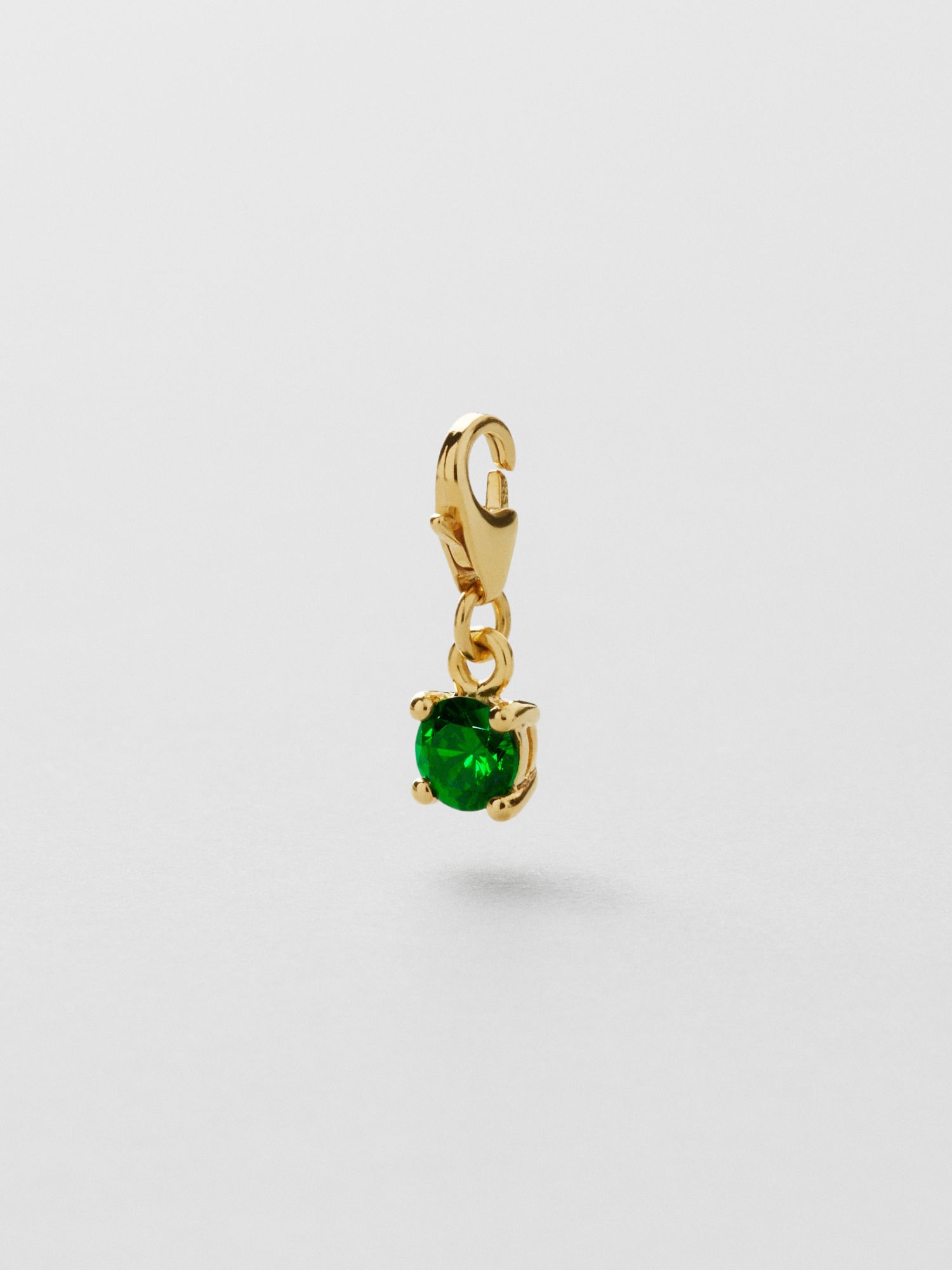 Charm in genuine 925 sterling silver, decorated with a dark green Cubic Zirconia stone. The gold jewellery is plated with genuine 24K gold and has a core of genuine 925 sterling silver. This product is made of 100% recycled silver.