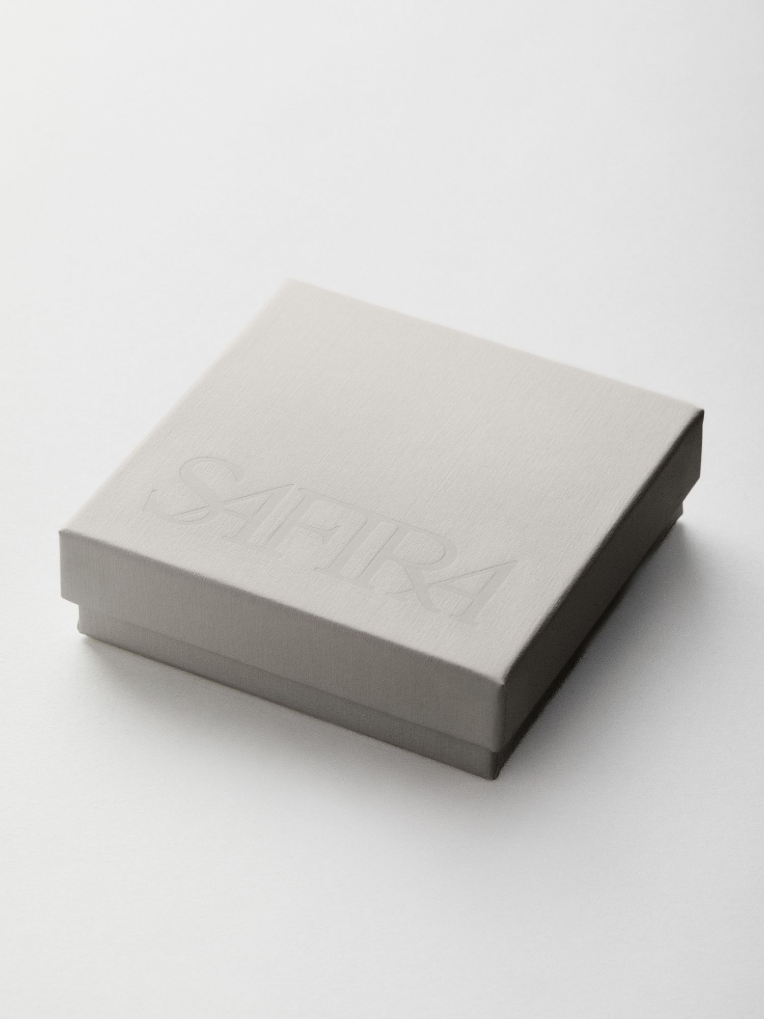 Gift box in grey with a removable black velvet cushion. Suitable for rings, earrings, piercings, necklaces and bracelets.