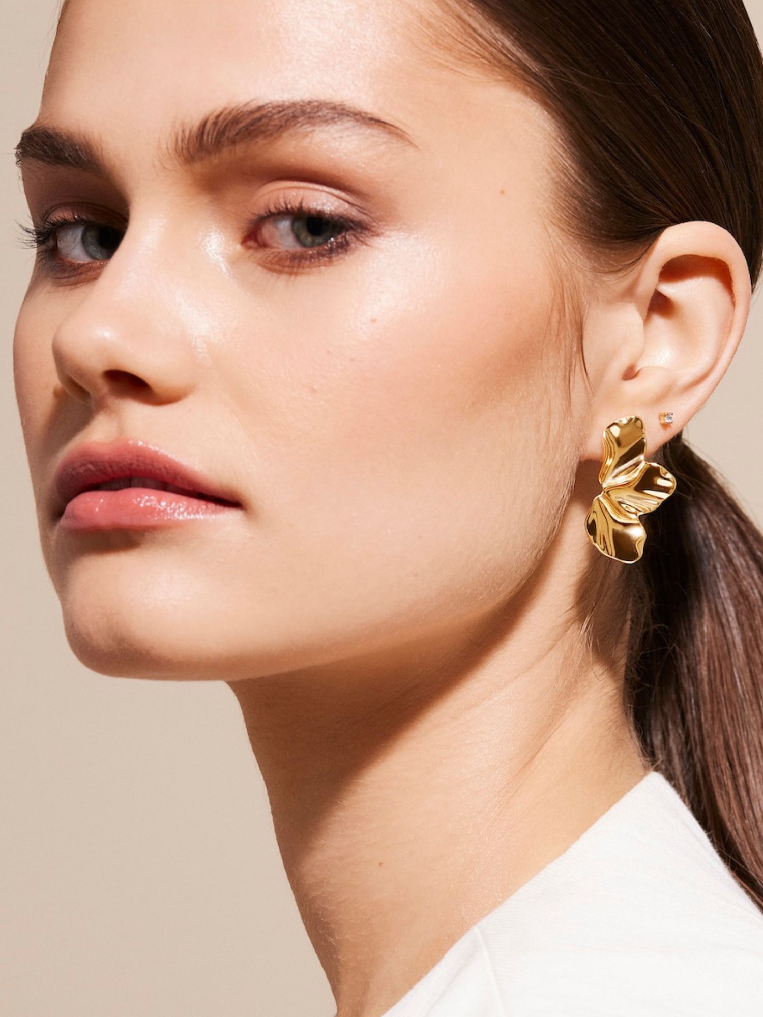 Flower petal shaped earrings gilded with genuine 925 sterling silver or genuine 18K gold, with a core made of brass. This jewellery is 100% recycled.