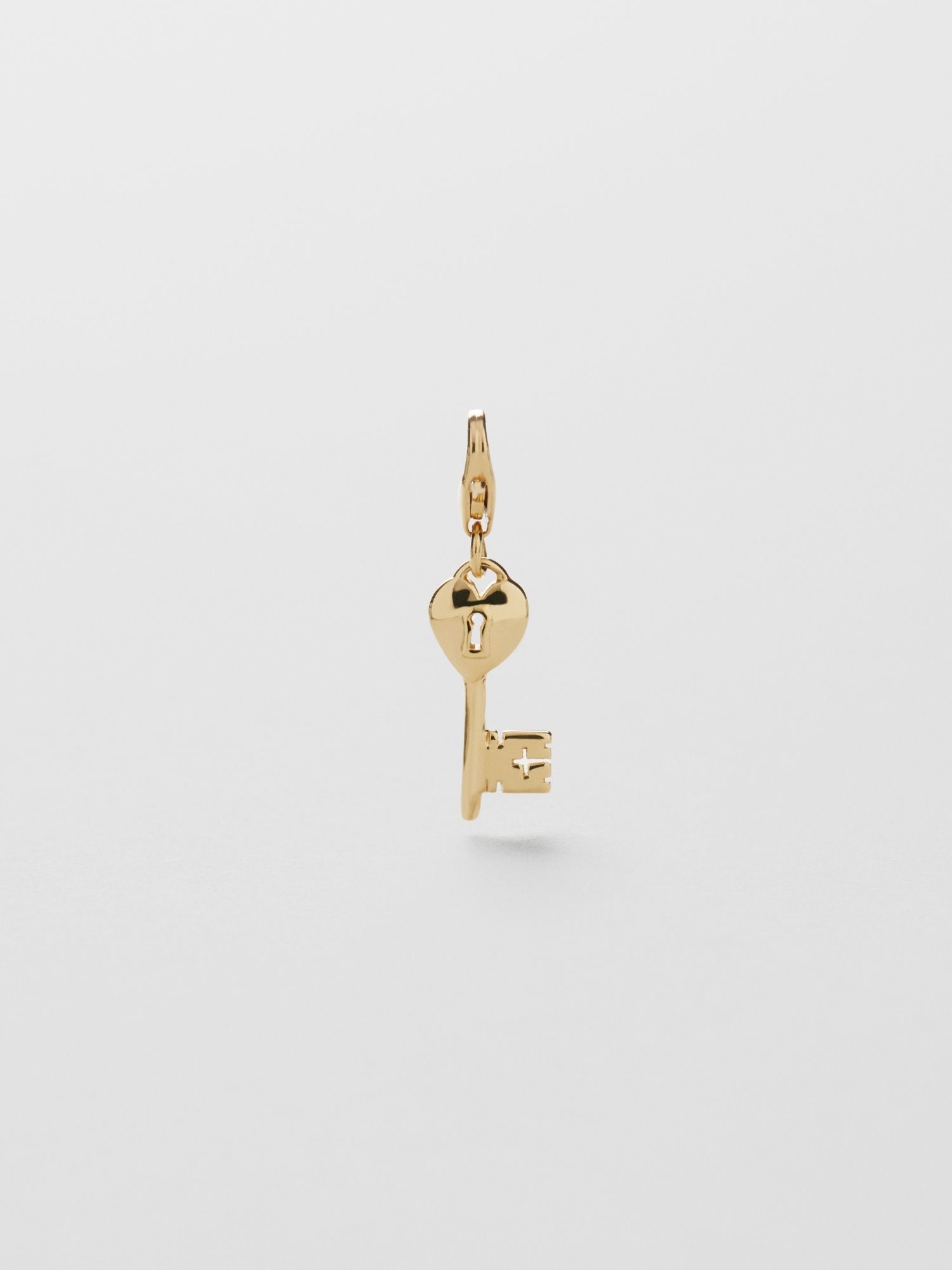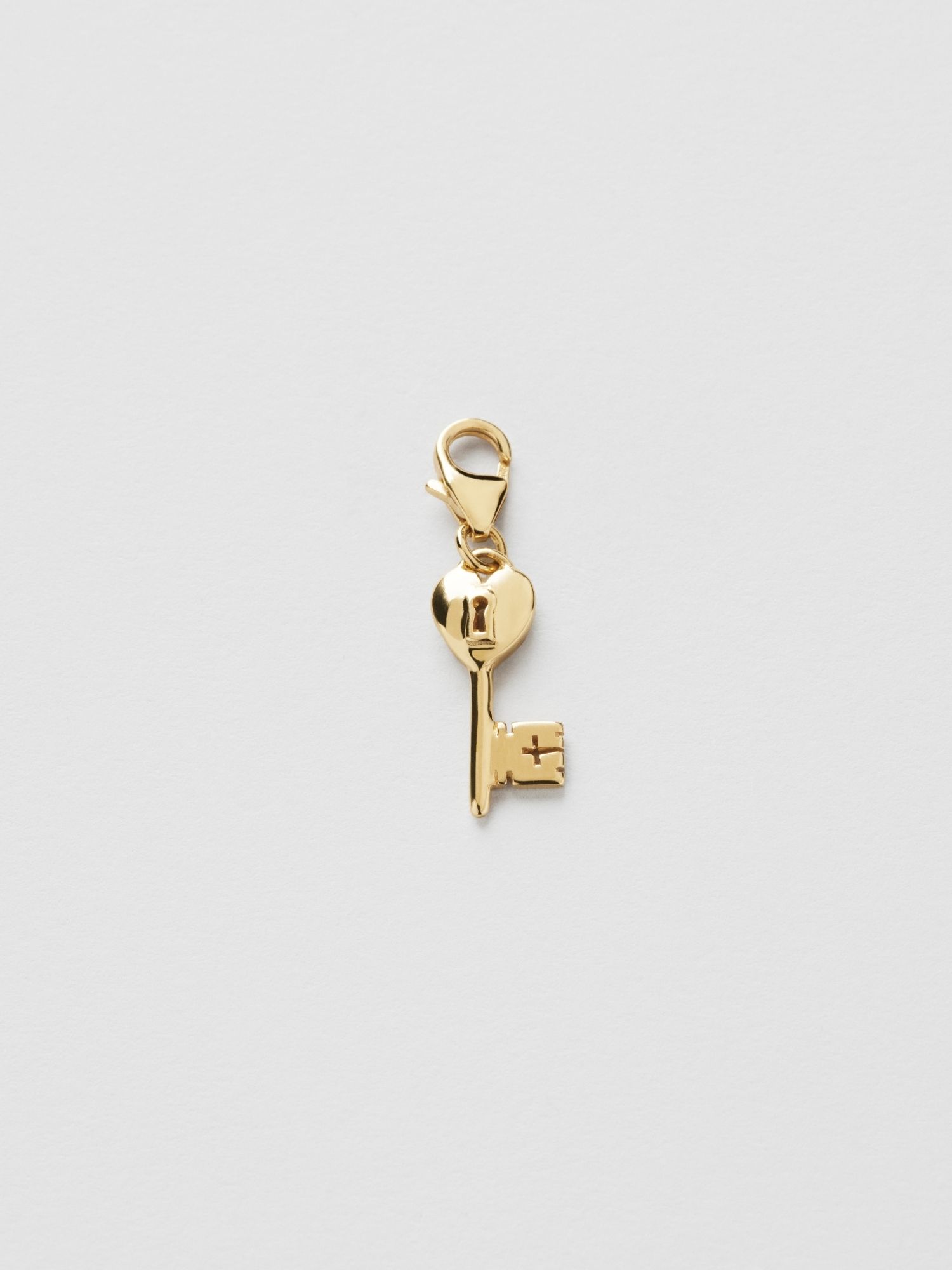 Charm in the shape of a key in genuine 925 sterling silver. The gold jewellery is plated with genuine 24K gold and has a core of genuine 925 sterling silver. This product is made from 100% recycled silver.