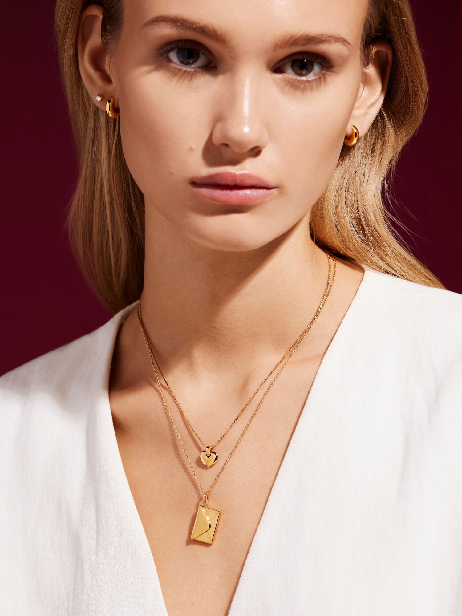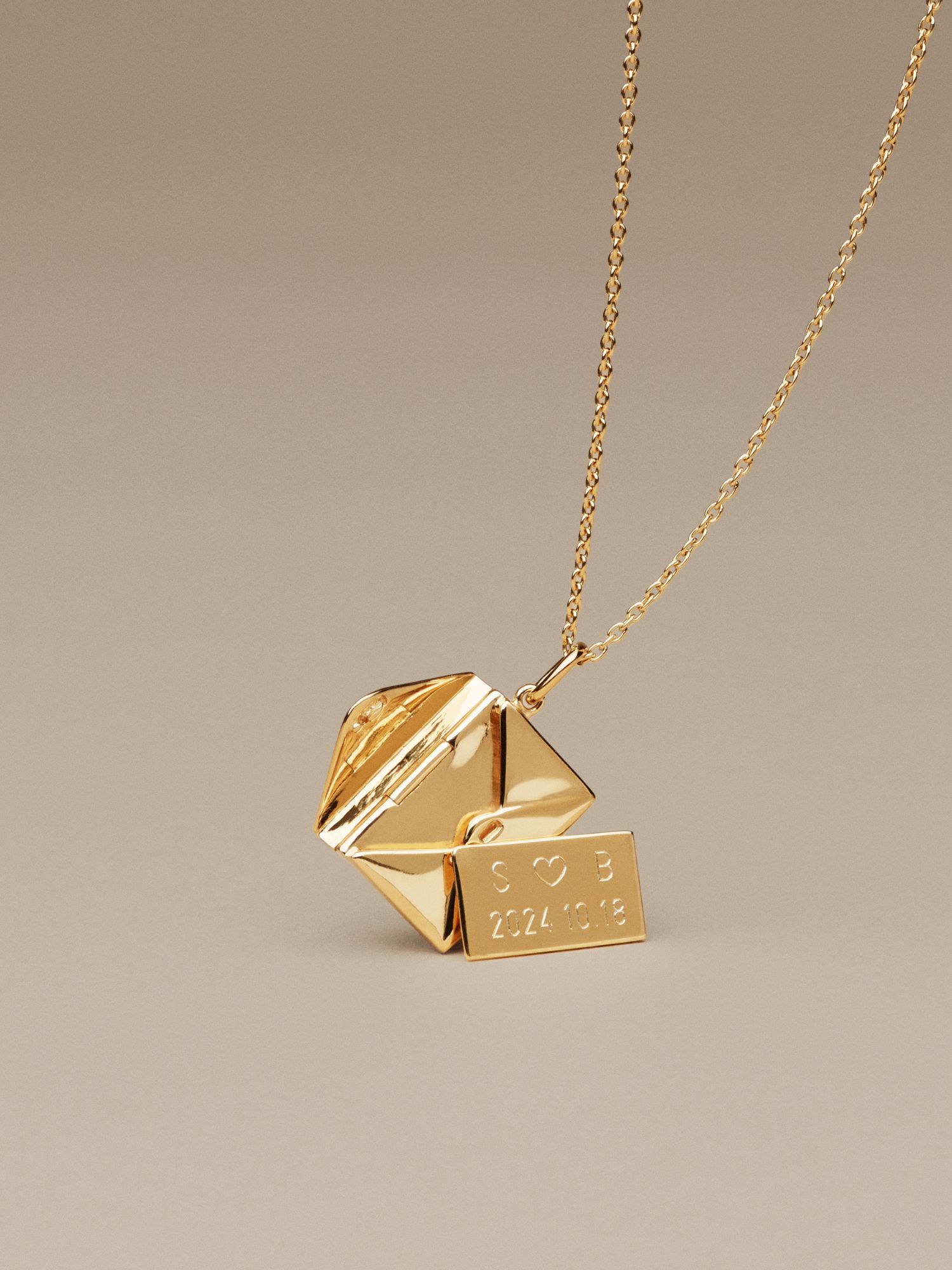 Envelope necklace with an engravable letter in genuine 925 sterling silver. The gold necklace is gilded with genuine 24K gold and has a core of genuine 925 sterling silver. This product is made of 100% recycled silver.