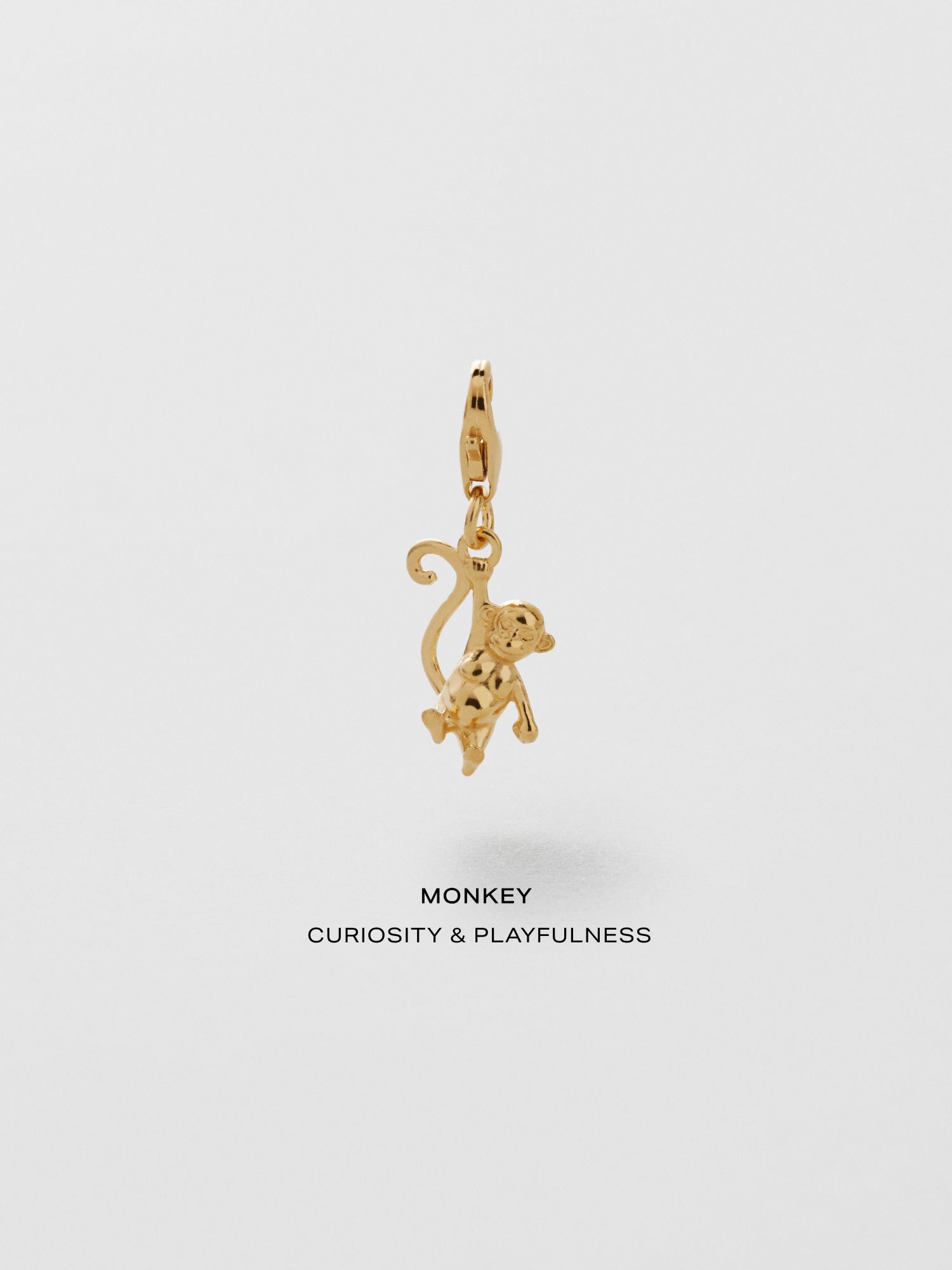 Charm in the shape of a monkey in genuine 925 sterling silver. The gold jewellery is plated with genuine 24K gold and has a core of genuine 925 sterling silver. This product is made of 100% recycled silver.