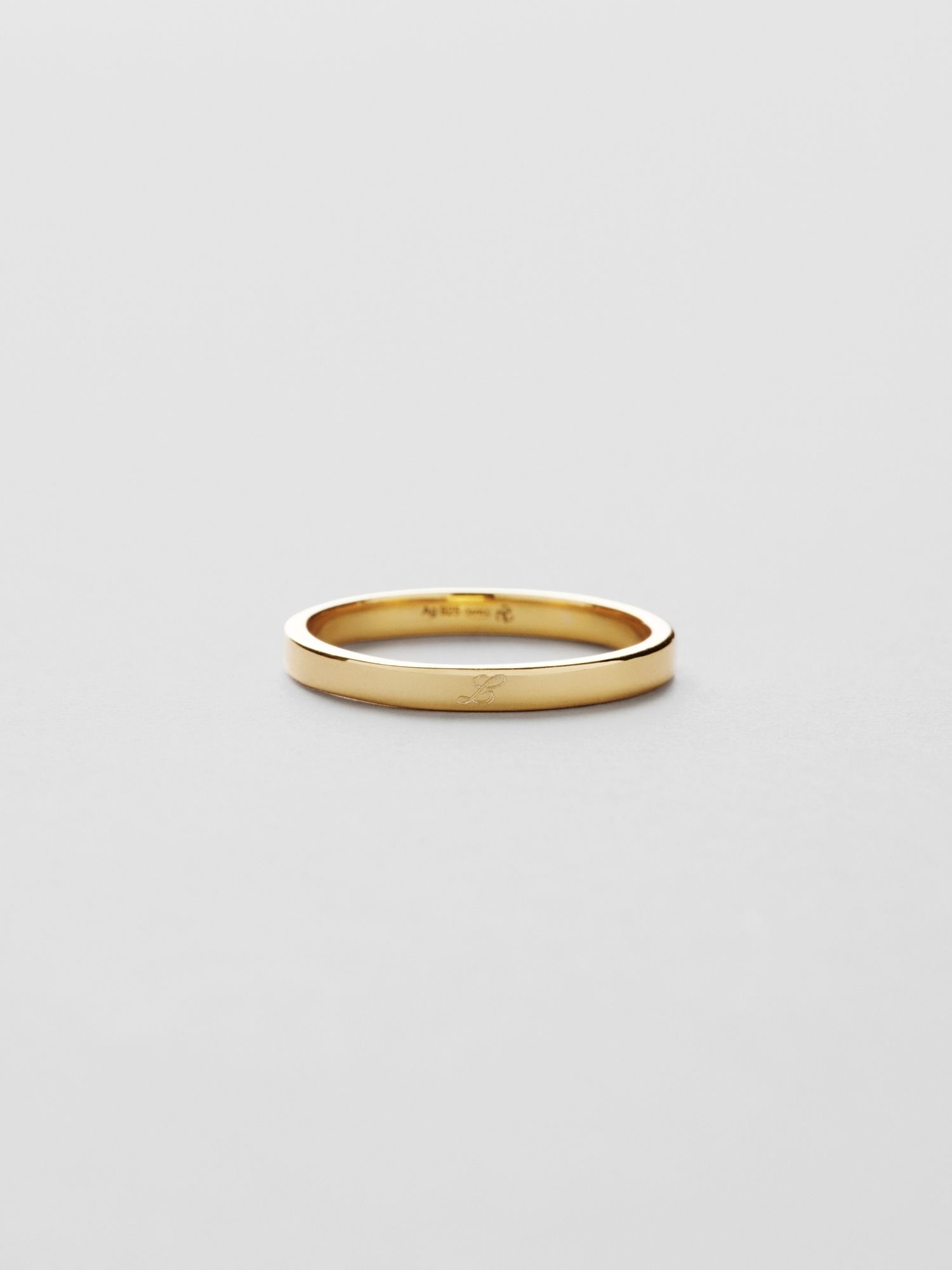 Engravable ring with a polished surface in genuine 925 sterling silver. The gold ring is plated with genuine 18K gold and has a core of genuine 925 sterling silver. This product is made from 100% recycled silver.