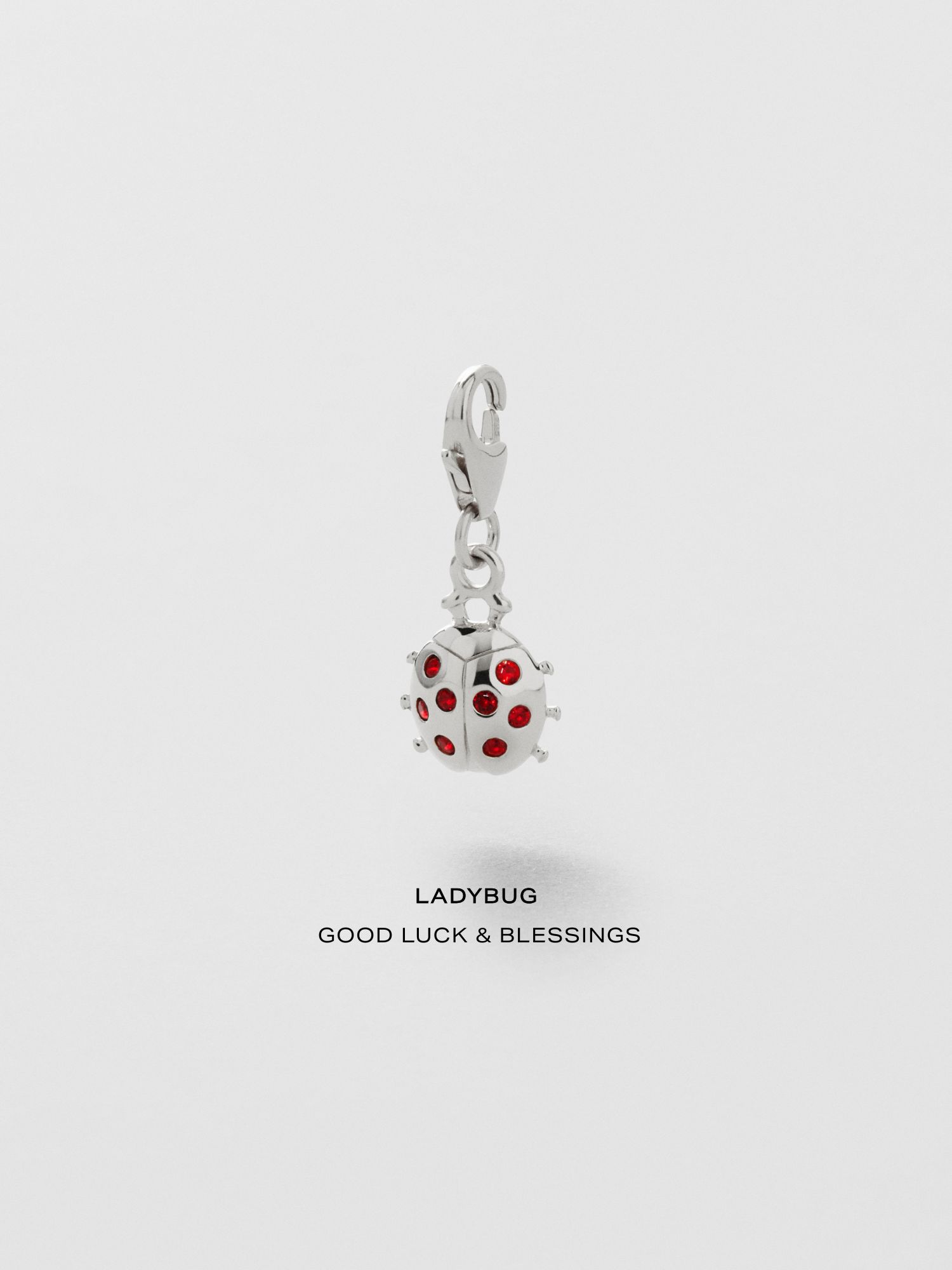 Charm in the shape of a ladybug in genuine 925 sterling silver, decorated with red Cubic Zirconia stones. The gold jewellery is plated with genuine 24K gold and has a core of genuine 925 sterling silver. This product is made of 100% recycled silver.
