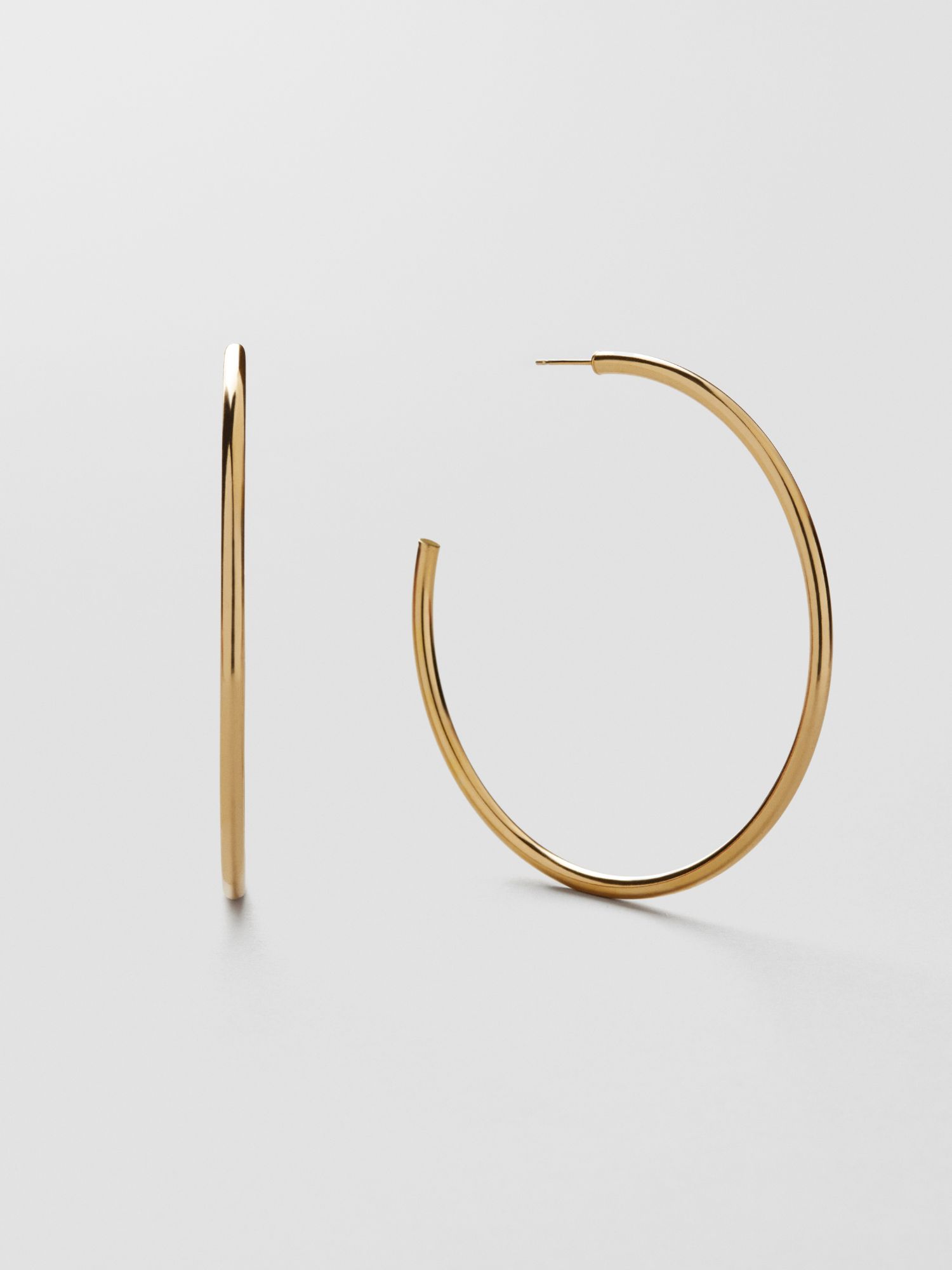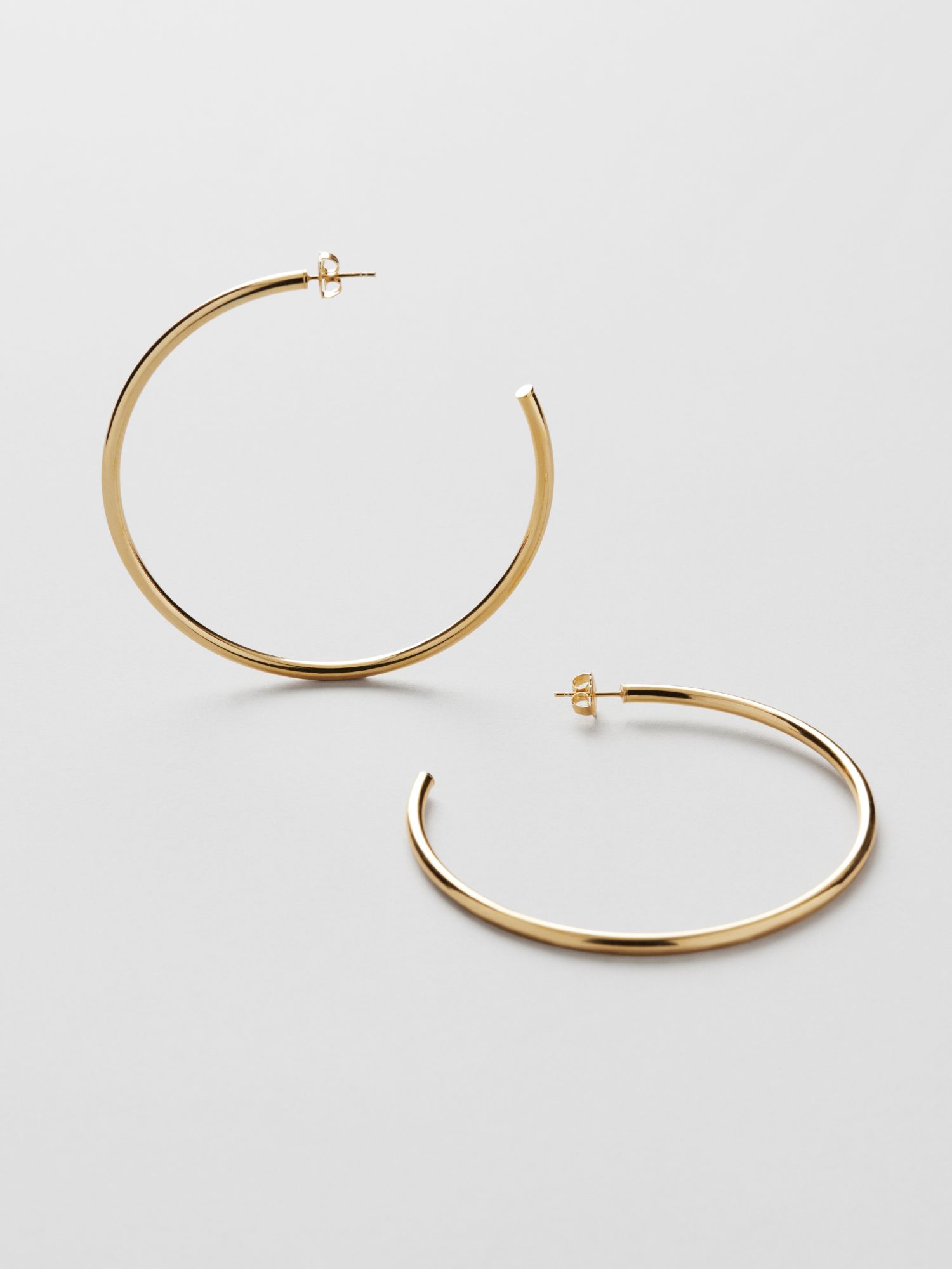 Large hoop earrings made of genuine 925 sterling silver. The gold earrings are plated with genuine 18K gold and has a core of genuine 925 sterling silver. This product is made from 100% recycled silver.