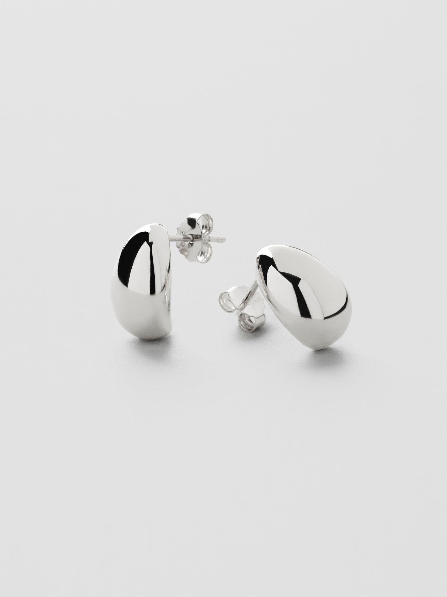 Drop shaped stud earrings in genuine 925 sterling silver. The gold earrings are plated with genuine 18K gold and have a core of genuine 925 sterling silver. This product is made from 100% recycled silver.