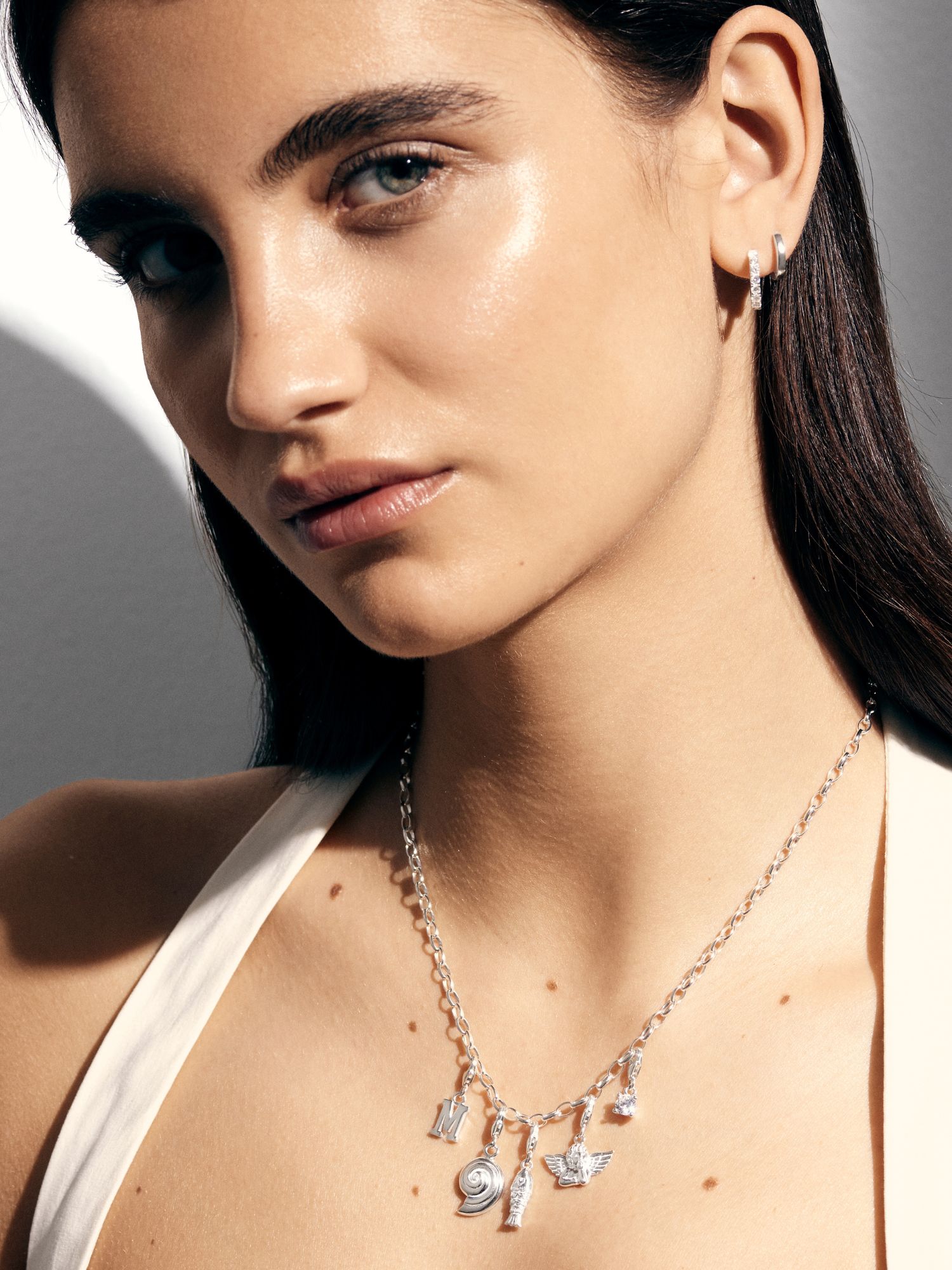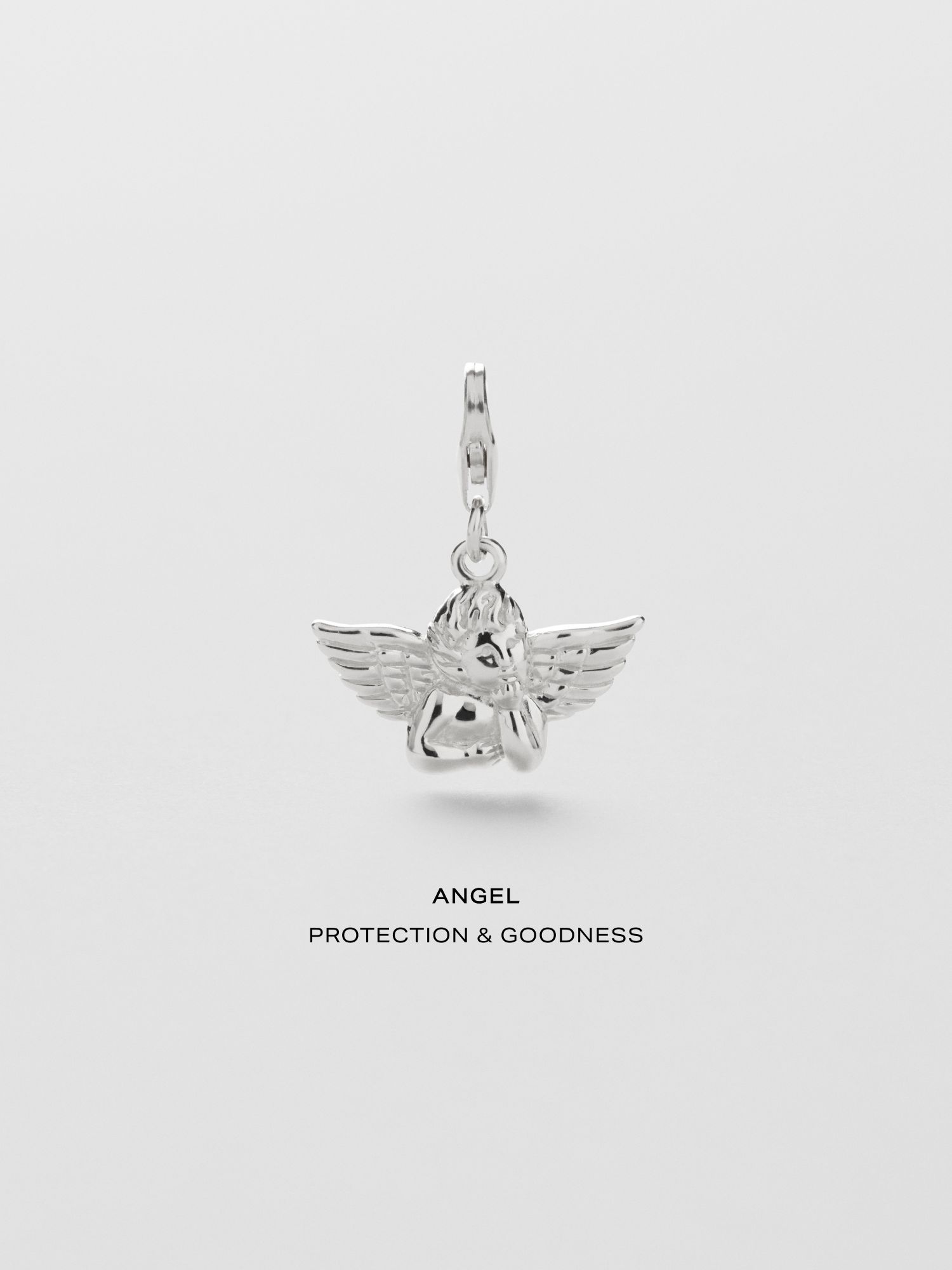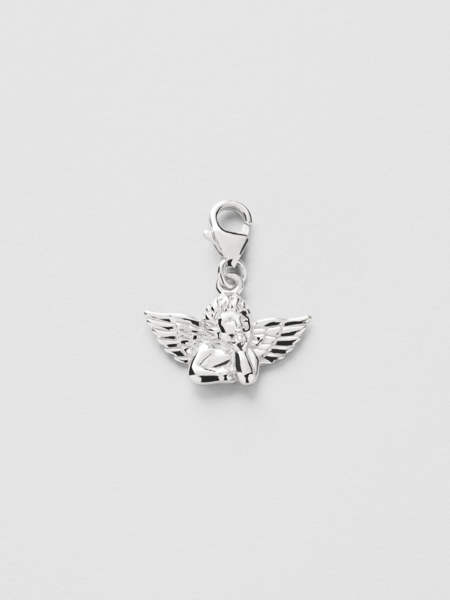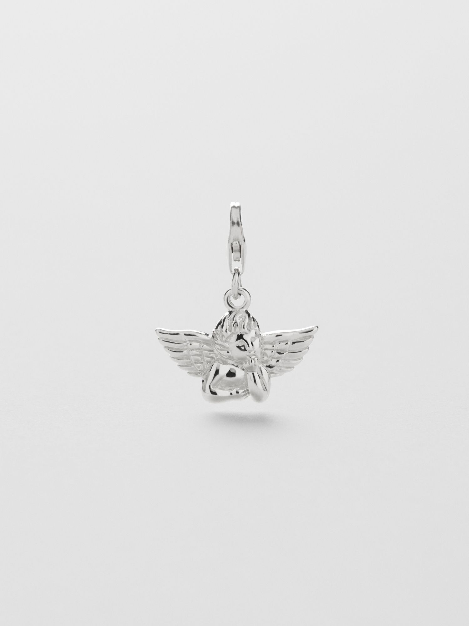 Charm in the shape of an angel in genuine 925 sterling silver. The gold jewellery is plated with genuine 24K gold and has a core of genuine 925 sterling silver. This product is made from 100% recycled silver.