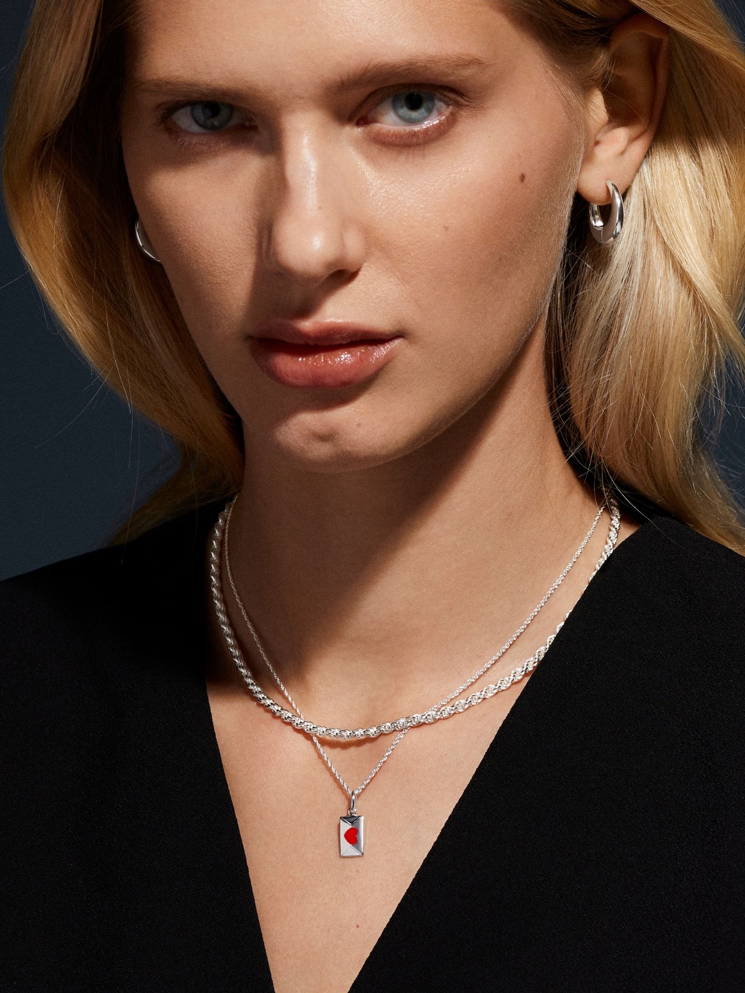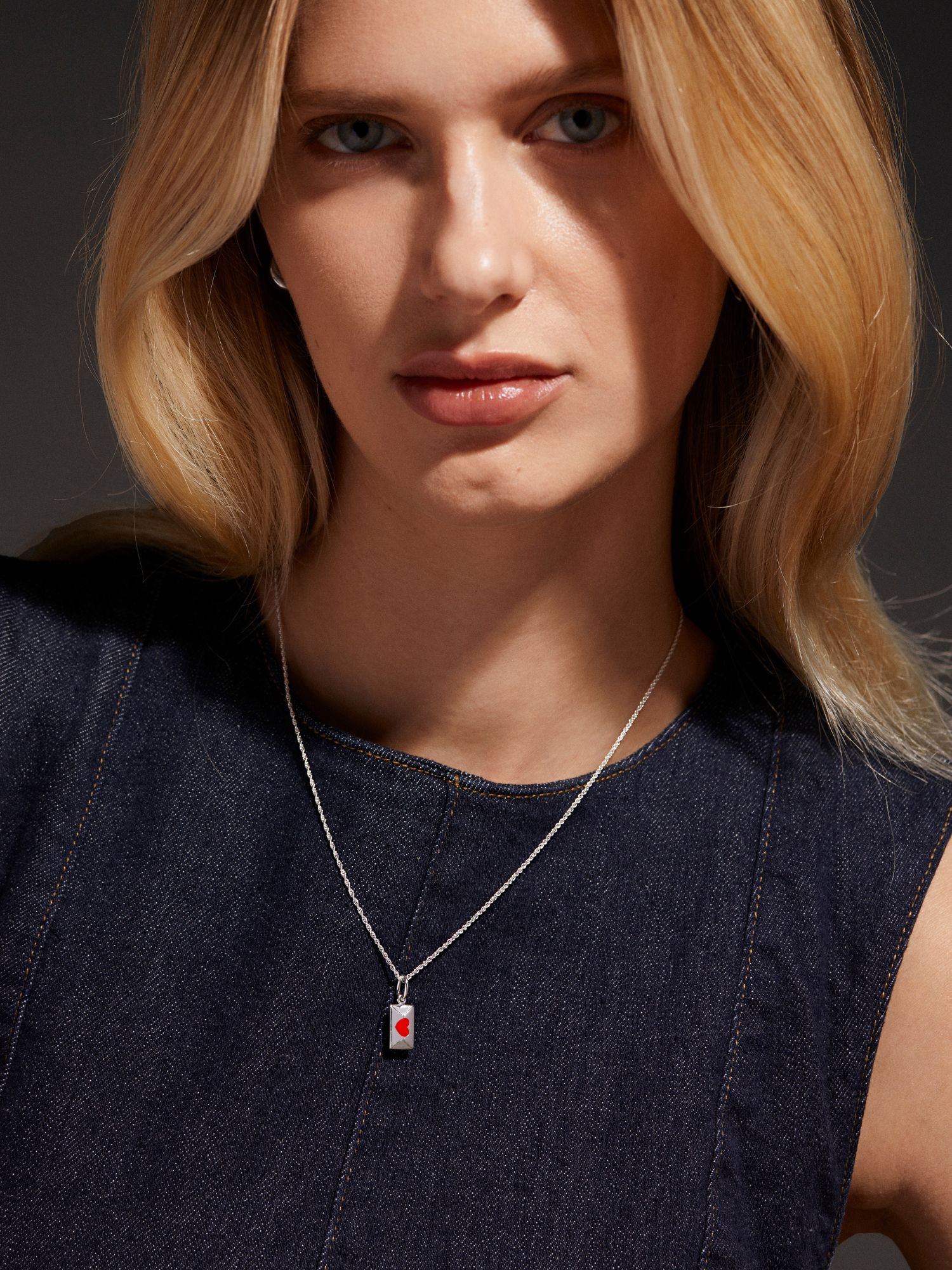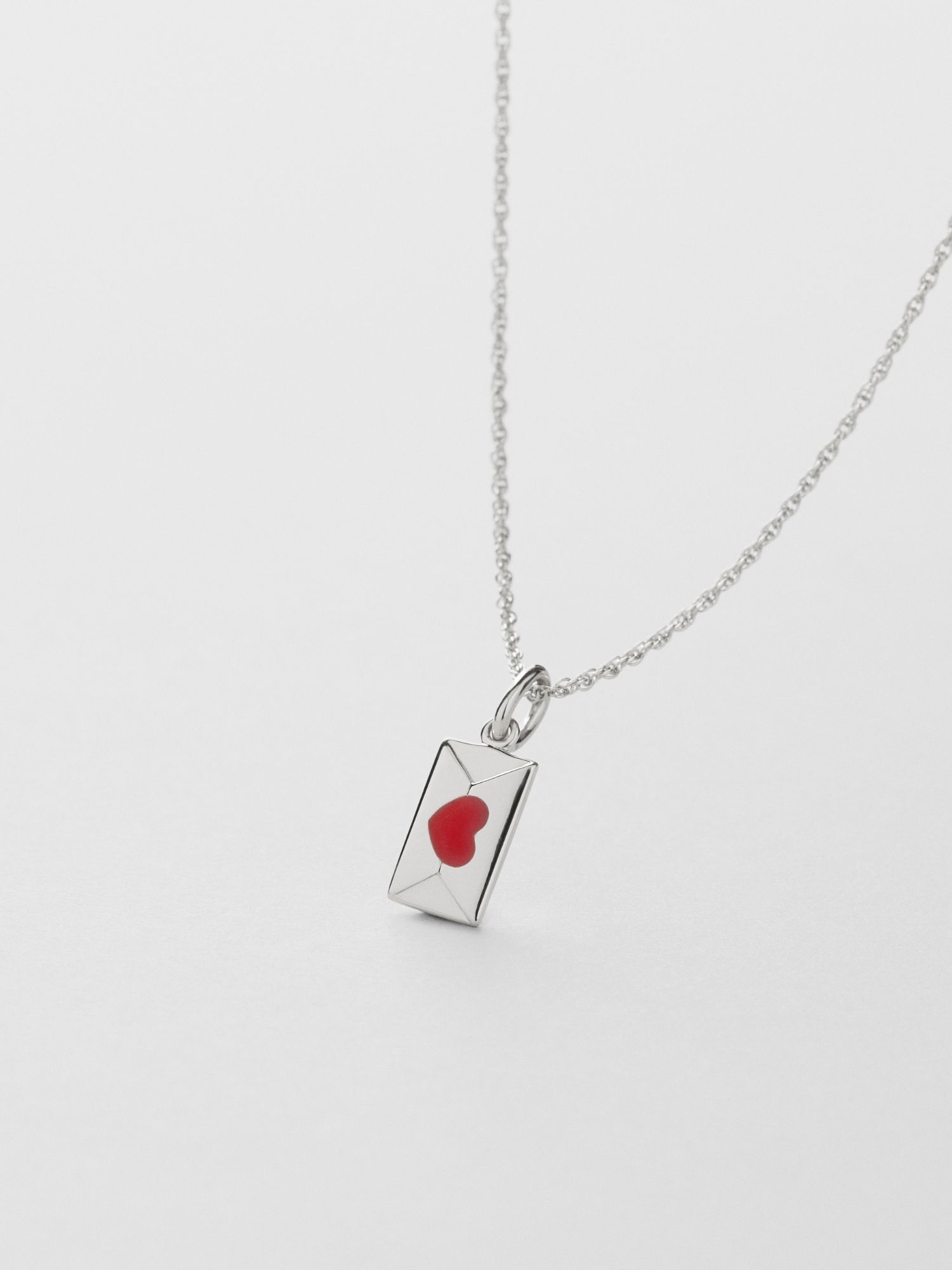 Envelope necklace with an enameled red heart in genuine 925 sterling silver. The gold necklace is glided with genuine 24K gold and has a core of genuine 925 sterling silver. This product is made from 100% recycled silver.