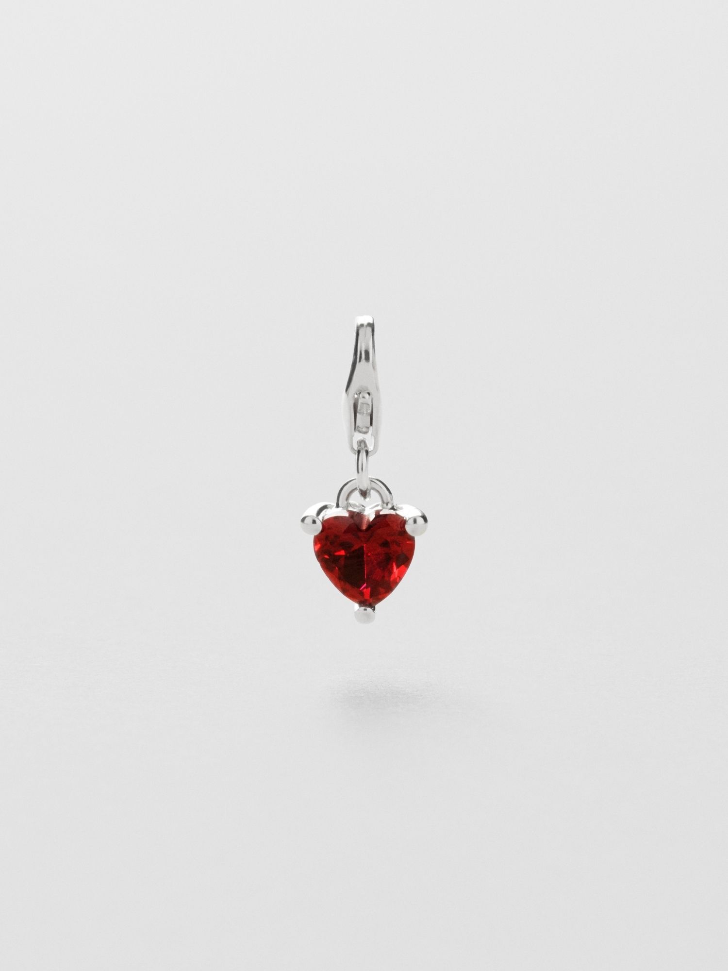 Charm with a red heart shaped Cubic Zirconia stone in genuine 925 sterling silver. The gold jewellery is plated with genuine 24K gold and has a core of genuine 925 sterling silver. This product is made from 100% recycled silver.
