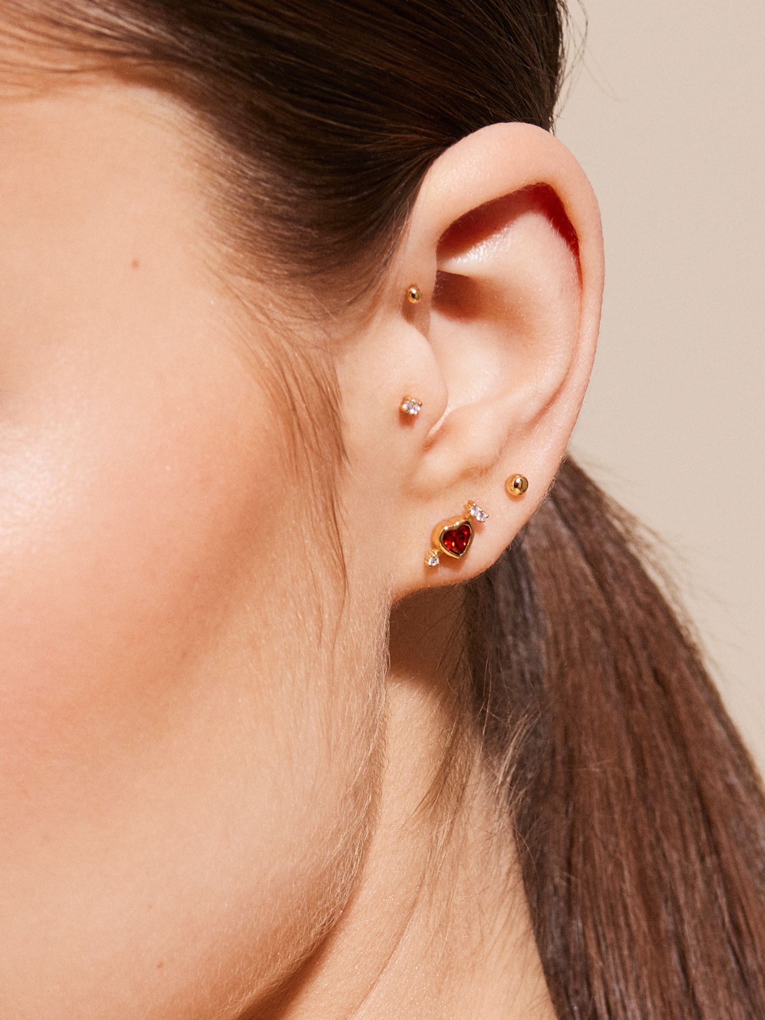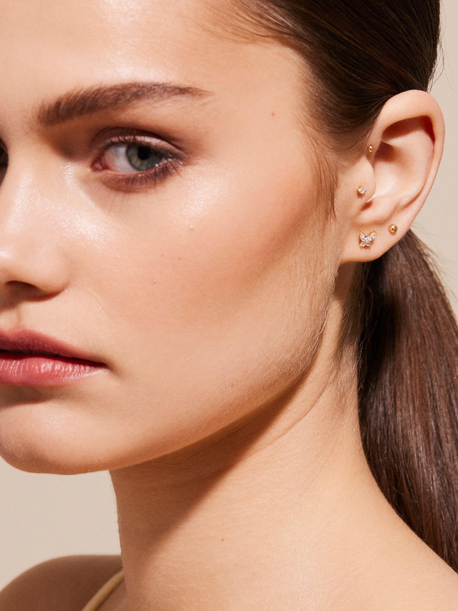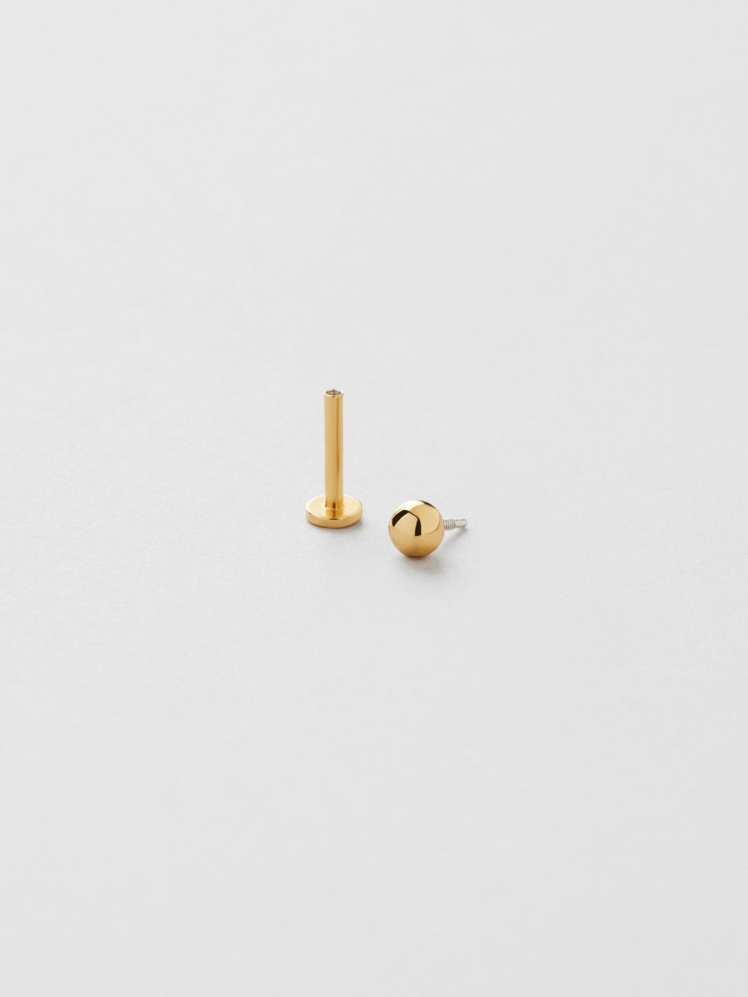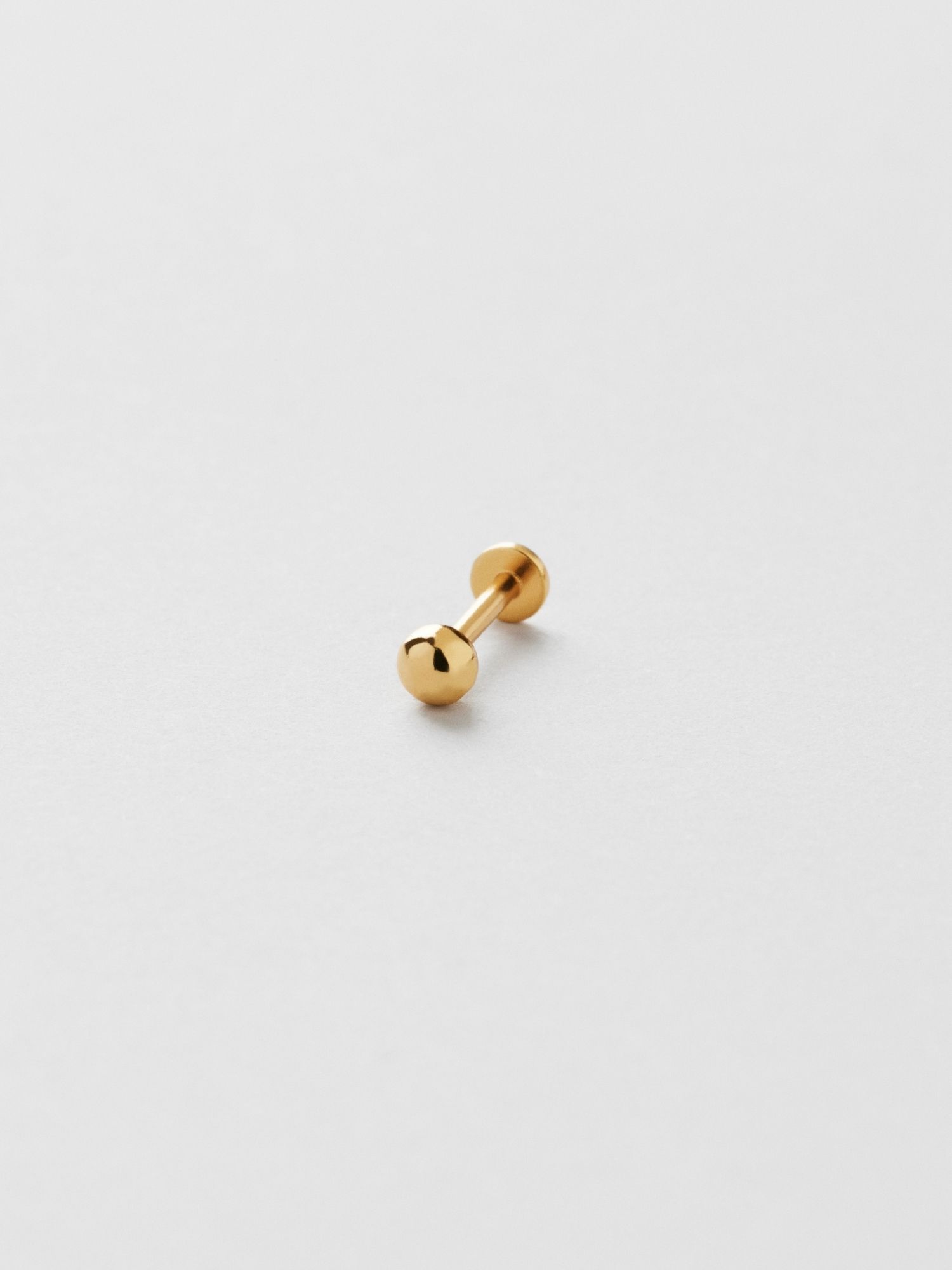 Piercing med liten kula i äkta 925 sterling silver. Guldsmycket är förgyllt med äkta 18K guld och har en kärna av äkta 925 sterling silver. Staven är tillverkad av äkta 925 sterling silver. Denna produkt är tillverkad av 100% återvunnet silver. Placera piercingens bakre del genom örat bakifrån och skruva fast med piercingens främre del.