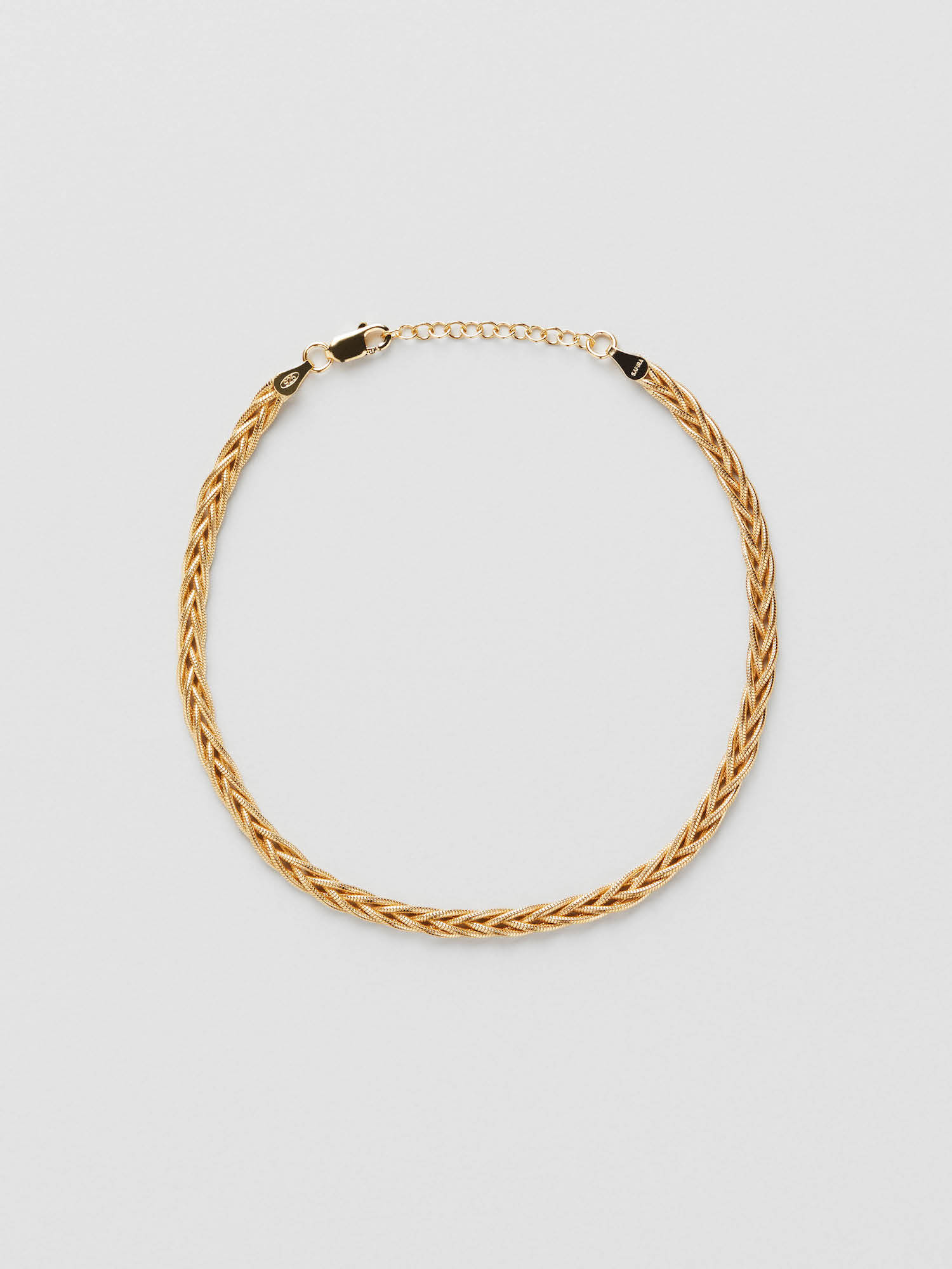 Flätad fotlänk i äkta 925 sterling silver. Fotlänken i guld är förgylld med äkta 18K guld och har en kärna av äkta 925 sterling silver. Denna produkt är 100% återvunnet silver.