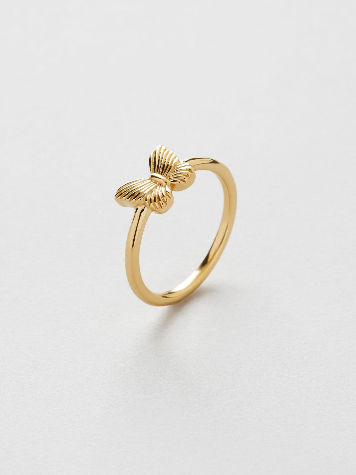 Ring med en fjäril i äkta 925 sterling silver. Guldsmycket är förgyllt med äkta 24K guld och har en kärna av äkta 925 sterling silver. Denna produkt är tillverkad av 100% återvunnet silver.
