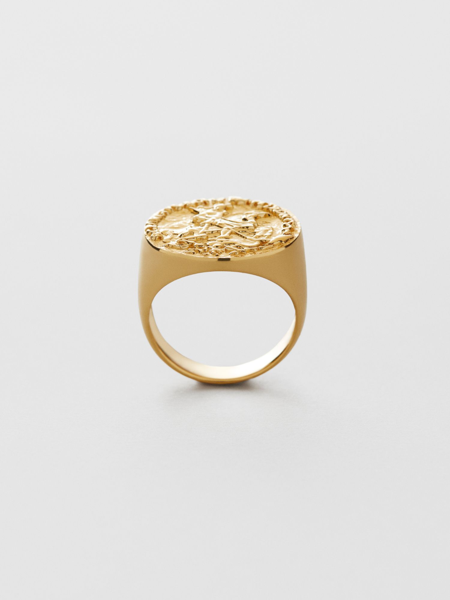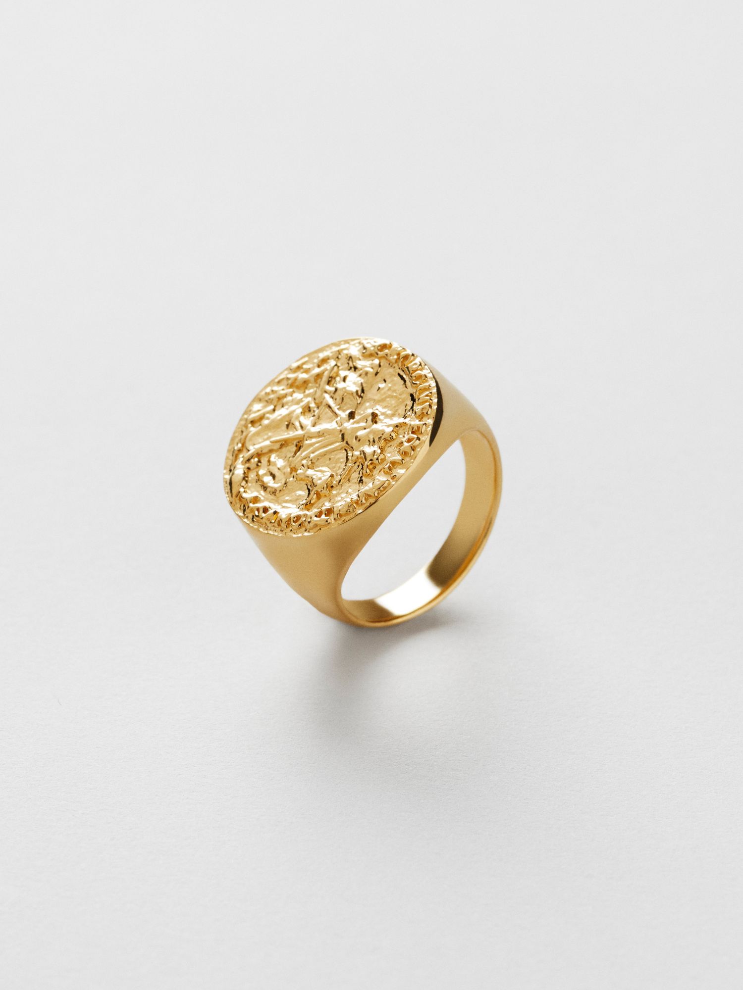 Klackring med mönster i äkta 925 sterling silver. Guldringen är förgylld med äkta 18K guld och har en kärna av äkta 925 sterling silver. Denna produkt är 100% återvunnet silver.