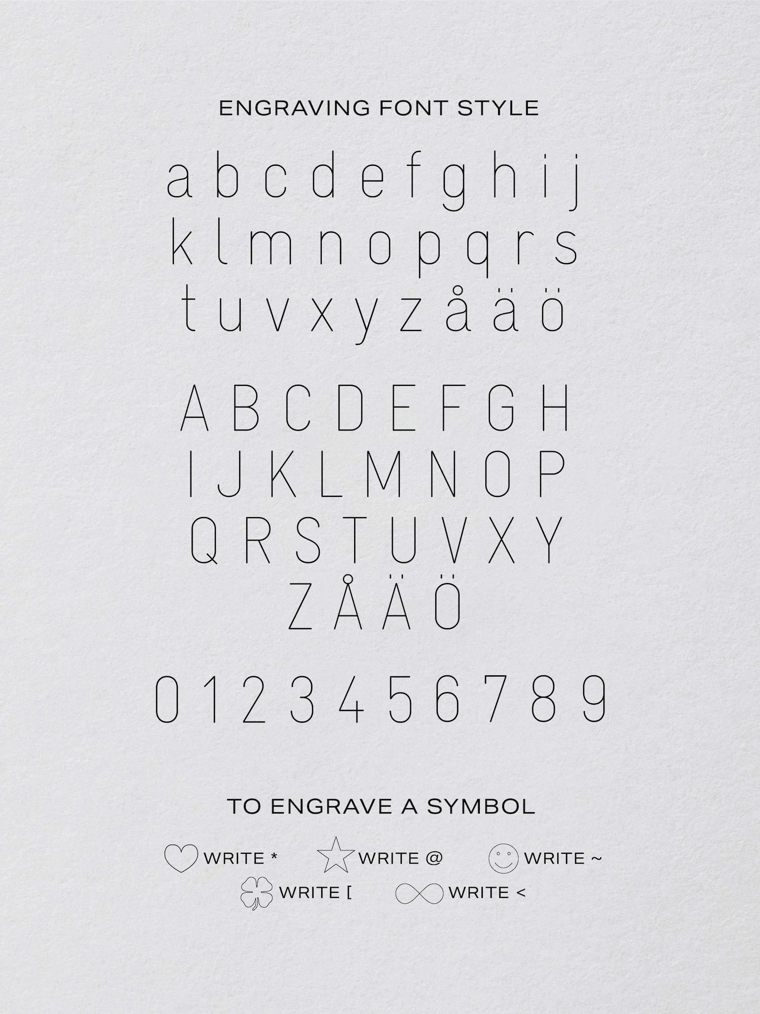 Detta smycke säljs med eller utan gravyr efter dina önskemål. Det typsnitt vi erbjuder för vald produkt visas på produktbilden.