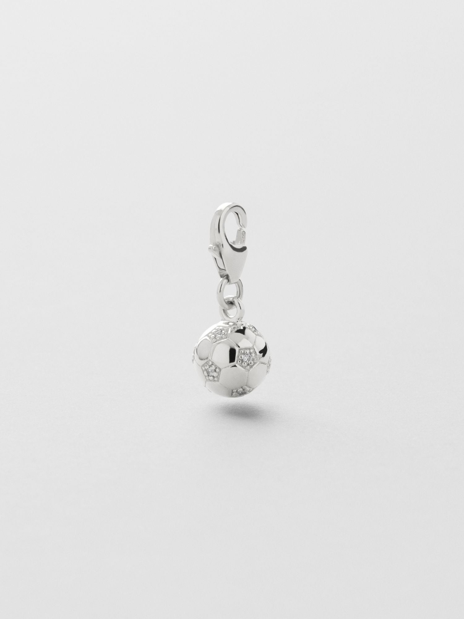 Berlock i form av en fotboll i äkta 925 sterling silver, dekorerad med klara Cubic Zirconia stenar. Guldsmycket är förgyllt med äkta 24K guld och har en kärna av äkta 925 sterling silver. Denna produkt är tillverkad av 100% återvunnet silver.