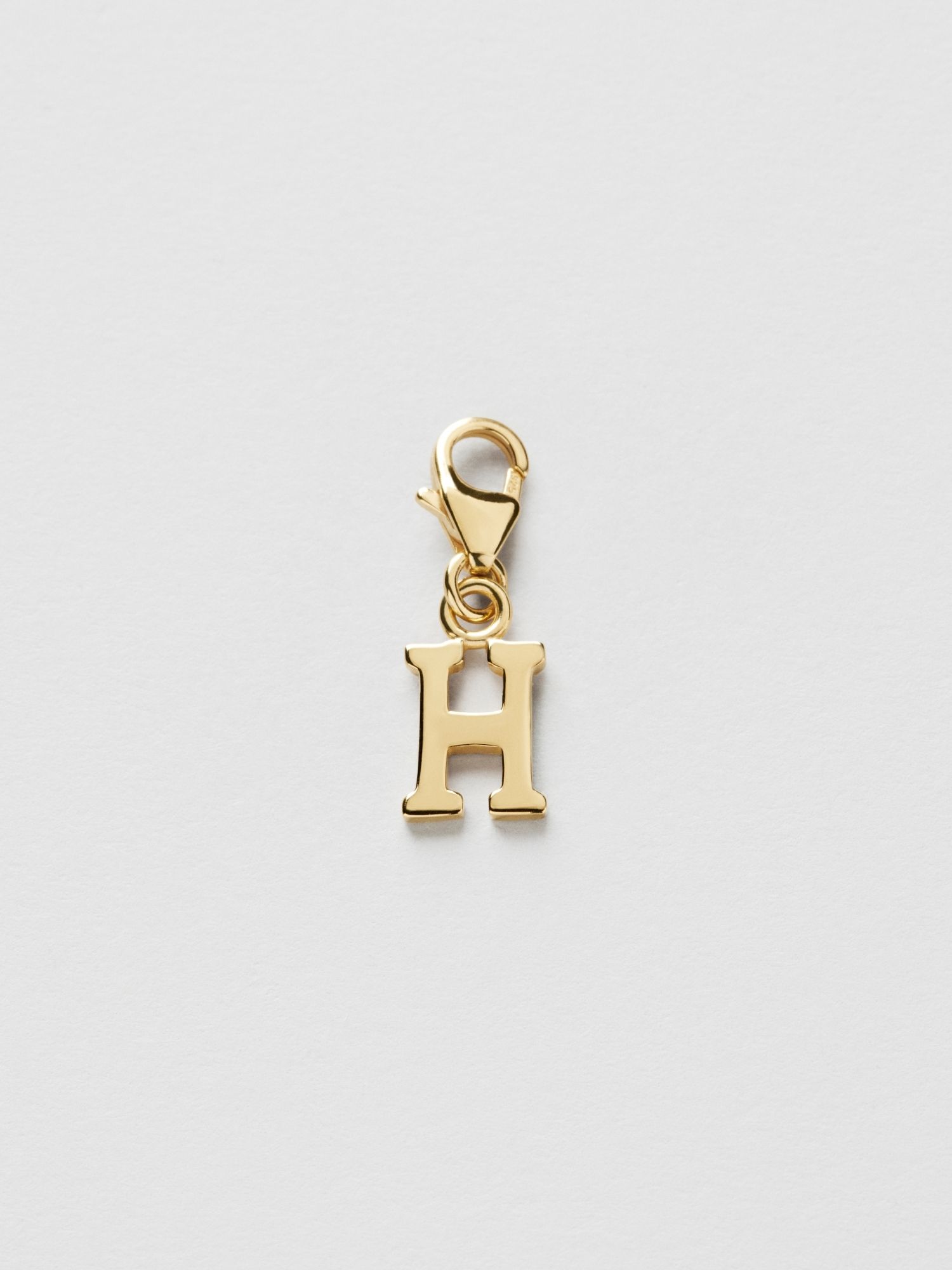 Berlock med bokstaven H i äkta 925 sterling silver. Guldsmycket är förgyllt med äkta 24K guld och har en kärna av äkta 925 sterling silver. Denna produkt är tillverkad av 100% återvunnet silver.