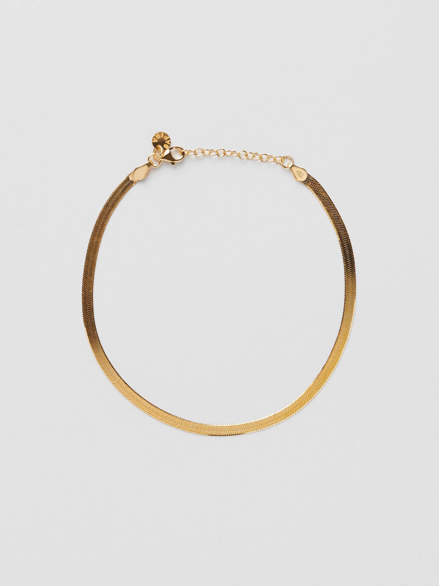 Fotlänk i herringbonekedja. Fotlänken är förgylld med äkta 18K guld och har en kärna av äkta 925 sterling silver. Denna produkt är 100% återvunnet silver.