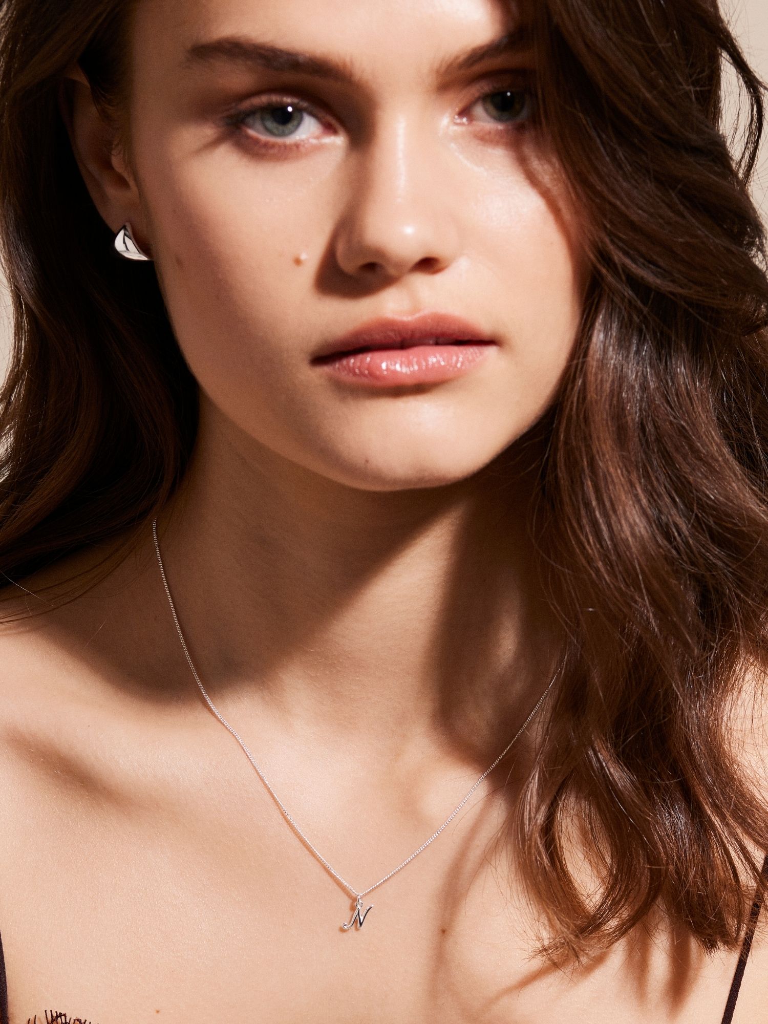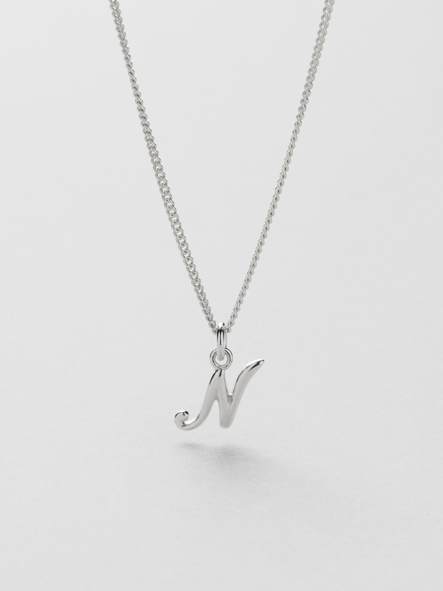 Bokstavshalsband med ett kursivt N i äkta 925 sterling silver. Guldhalsbandet är förgyllt med äkta 18K guld och har en kärna av äkta 925 sterling silver. Denna produkt är tillverkad av 100 % återvunnet silver.
