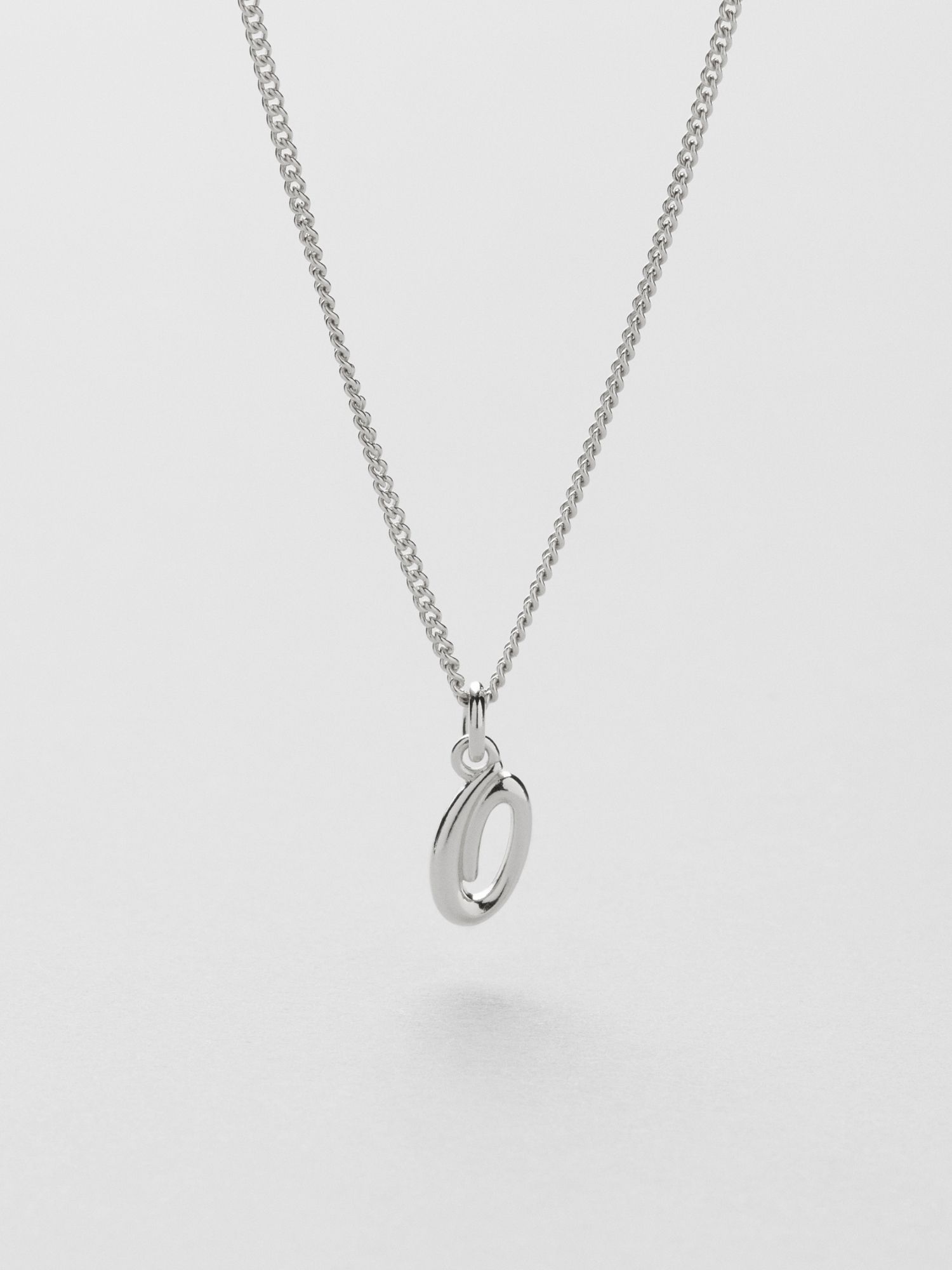 Bokstavshalsband med ett kursivt O i äkta 925 sterling silver. Guldhalsbandet är förgyllt med äkta 18K guld och har en kärna av äkta 925 sterling silver. Denna produkt är tillverkad av 100 % återvunnet silver.