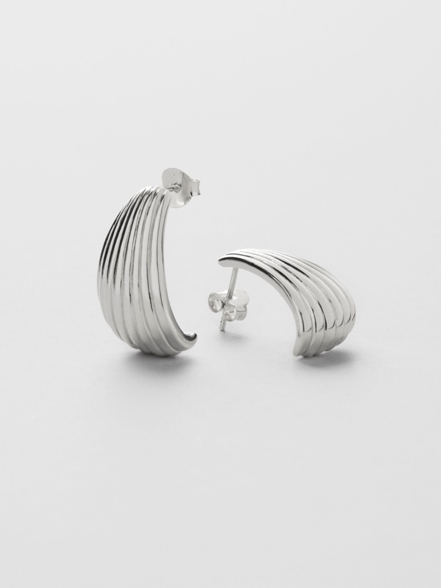 Striped stud earrings in a unique design, made from genuine 925 sterling silver. The gold earrings are plated with genuine 24K gold and have a core of genuine 925 sterling silver. This product is made from 100% recycled silver.