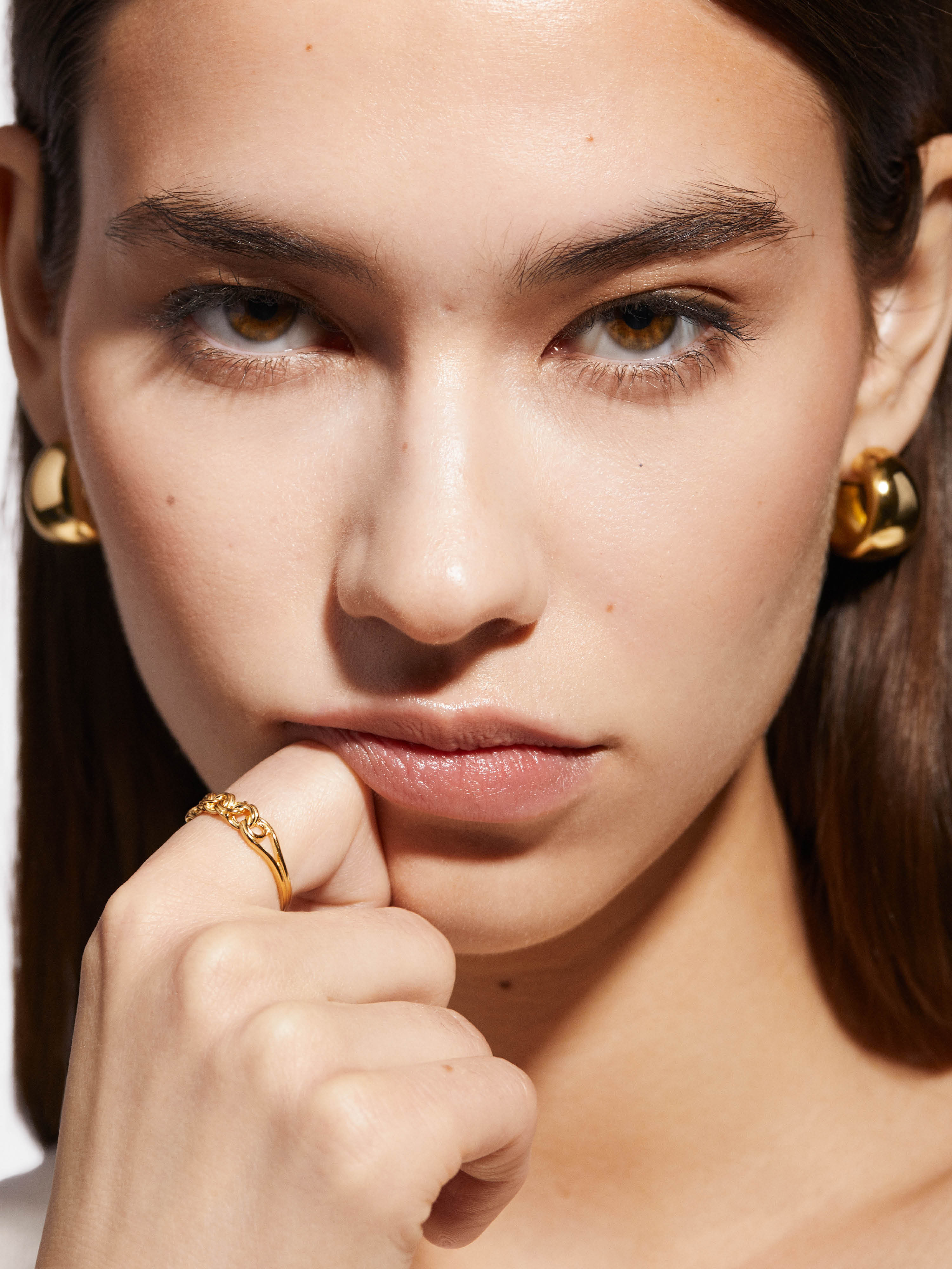 Bismarck ring in genuine 925 sterling silver. The gold ring is plated with genuine 24K gold and has a core of genuine 925 sterling silver. This product is made from 100% recycled silver.