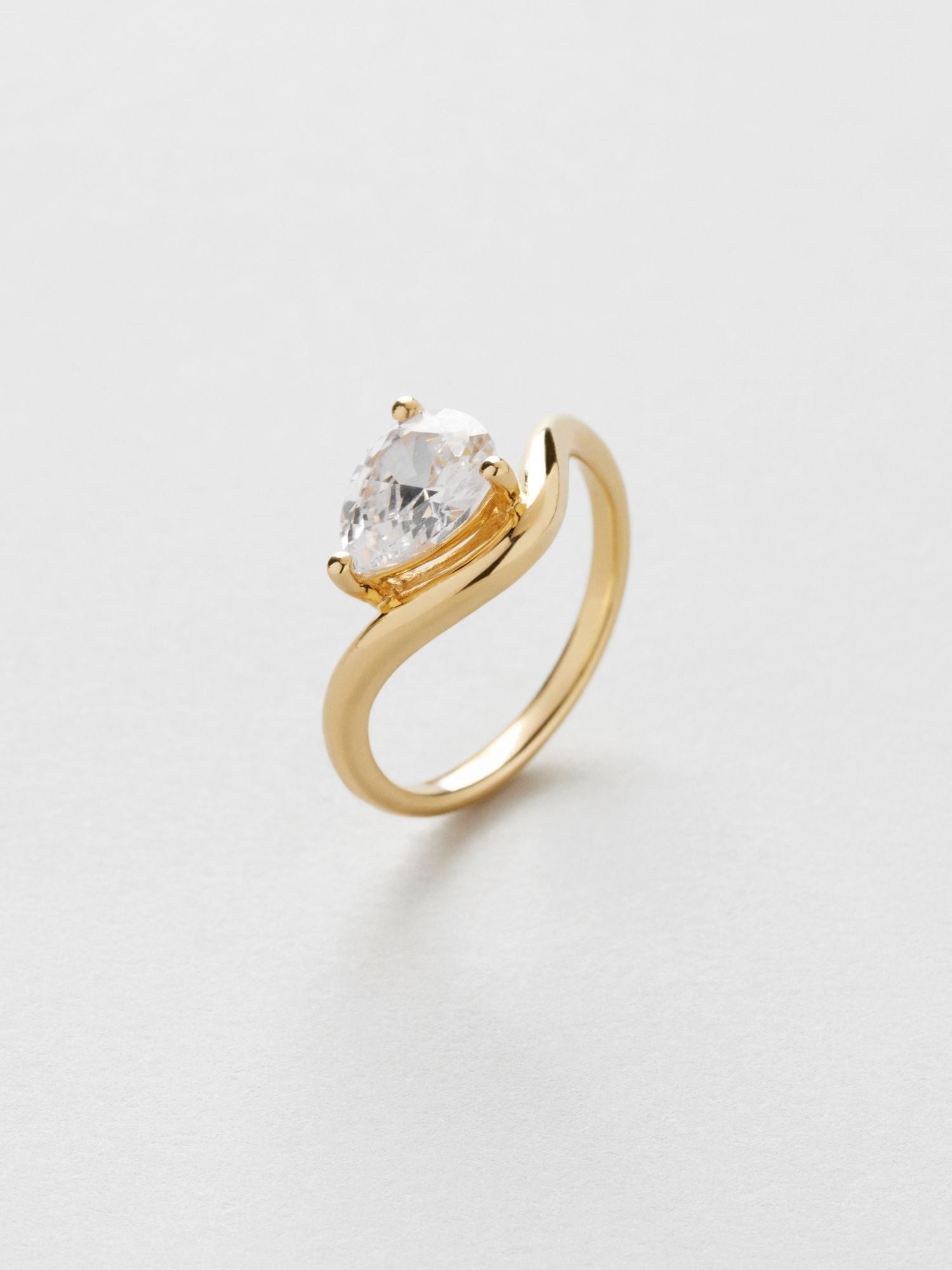 Ring in genuine 925 sterling silver decorated with a large clear Cubic Zirconia stone. The gold ring is plated with genuine 24K gold and has a core of genuine 925 sterling silver. This product is made from 100% recycled silver.
