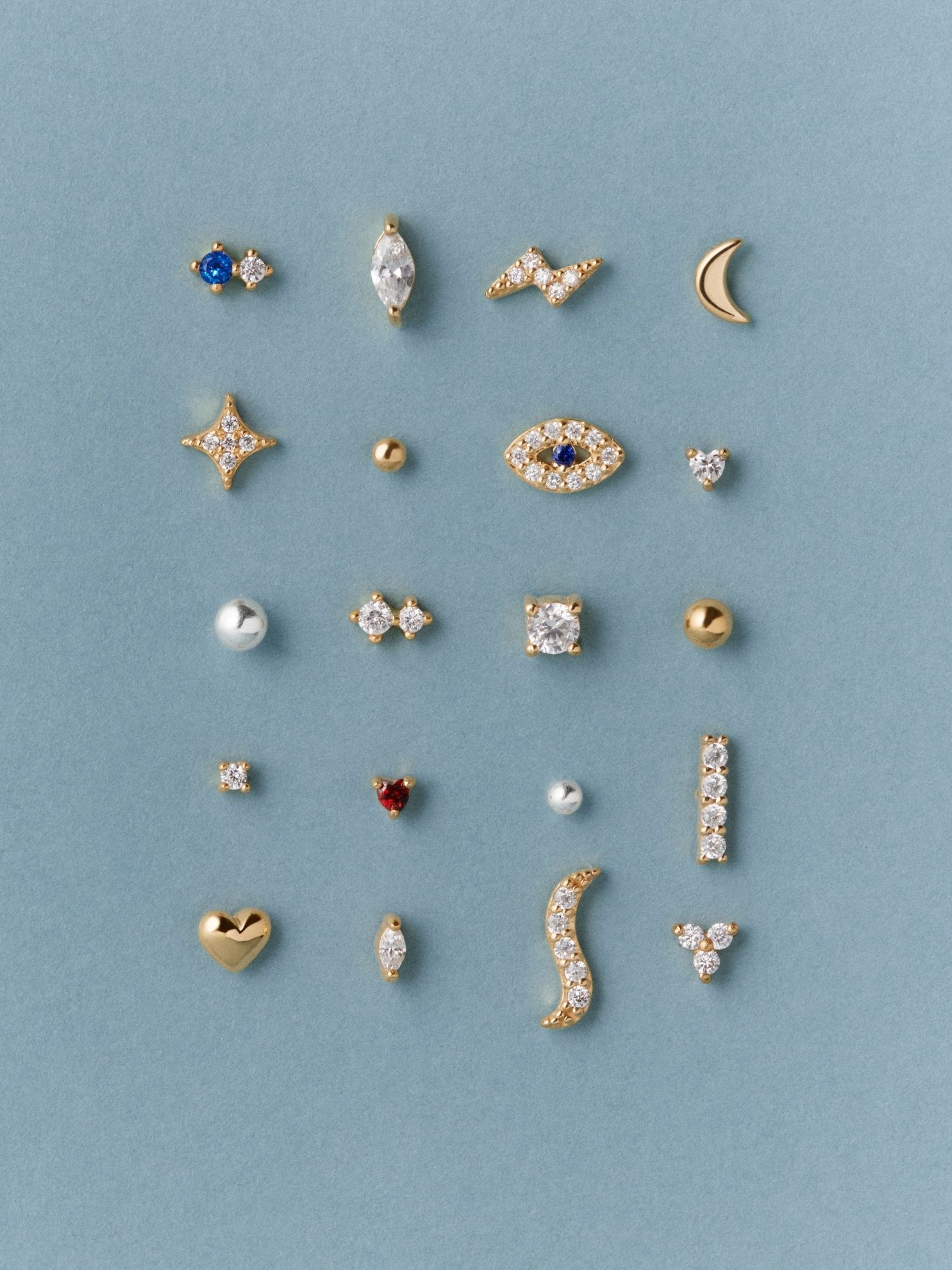 Piercing with an eye in genuine 925 sterling silver, adorned with clear cubic zirconia stones and a synthetic dark blue stone. The gold piercing is plated with genuine 24K gold and has a core of genuine 925 sterling silver. This product is made from 100% recycled silver.