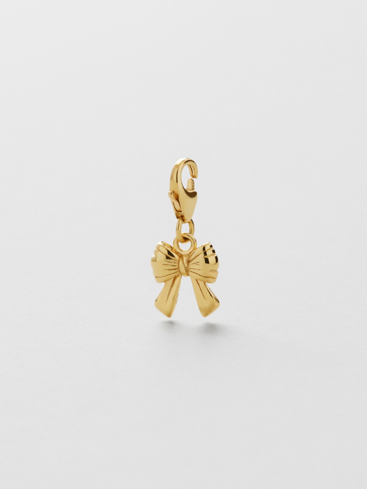 Charm in the shape of a bow in genuine 925 sterling silver. The gold jewellery is plated with genuine 24K gold and has a core of genuine 925 sterling silver. This product is made of 100% recycled silver.