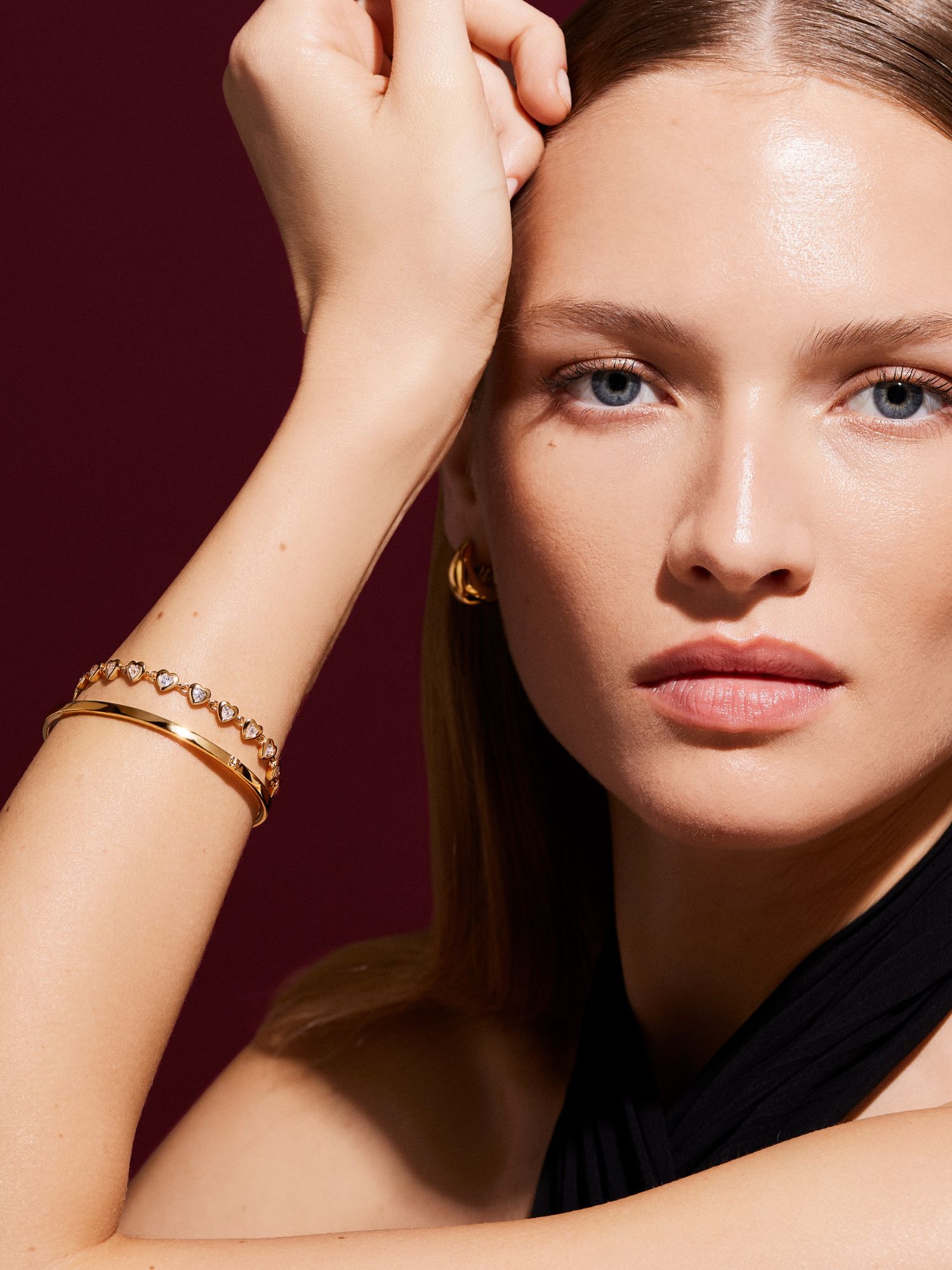 Engravable bangle bracelet in genuine 925 sterling silver. The gold bracelet is plated with genuine 24K gold and has a core of genuine 925 sterling silver. This product is made from 100% recycled silver.