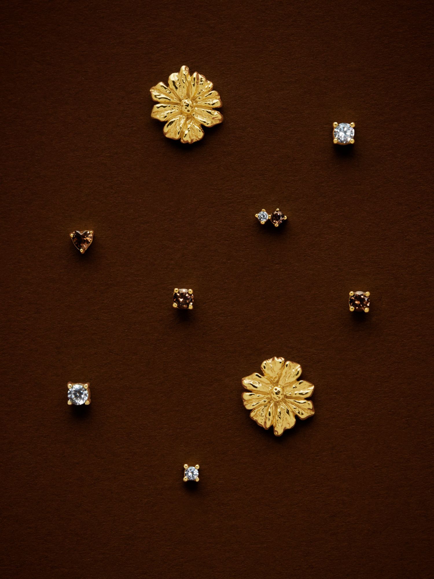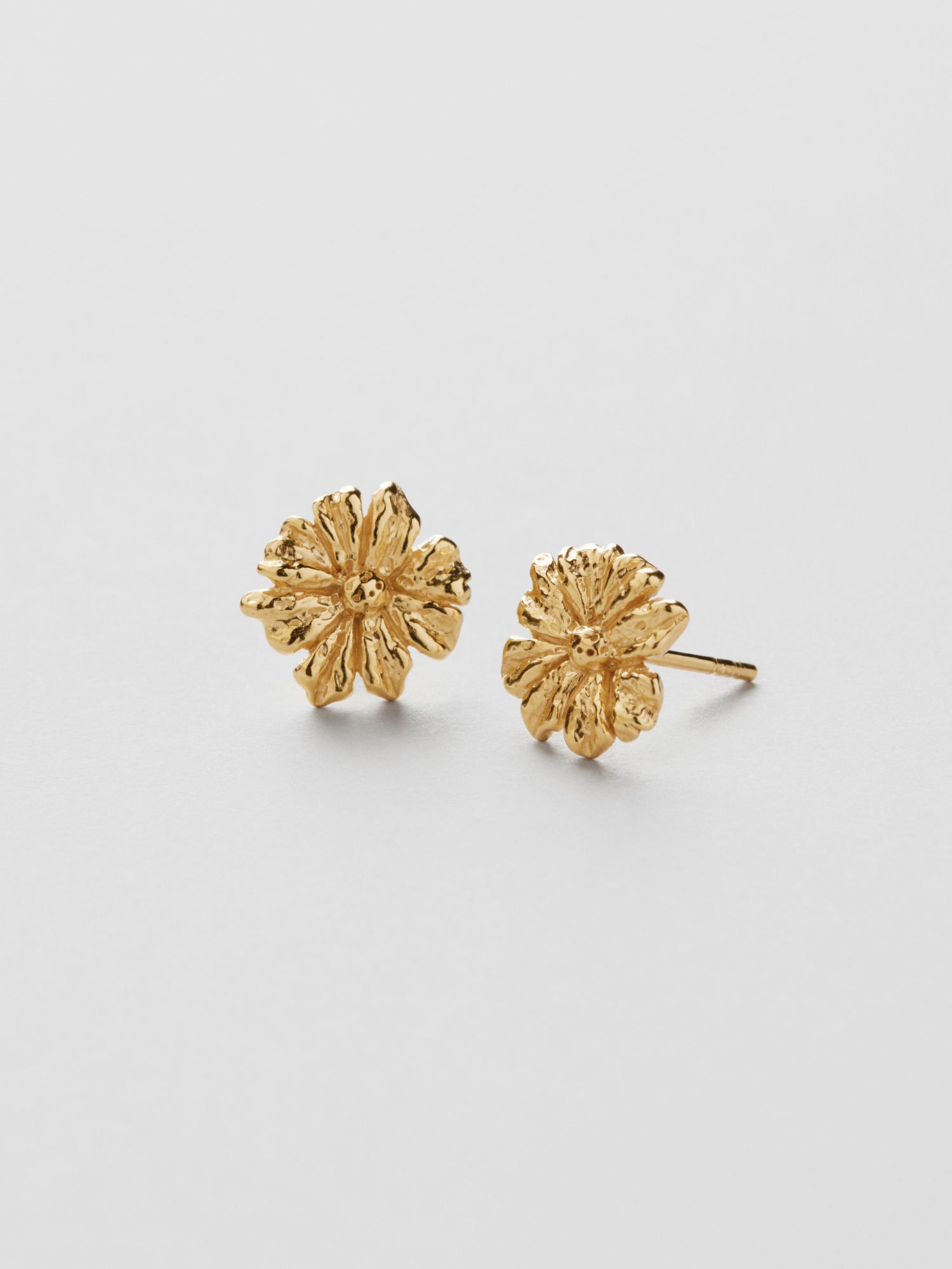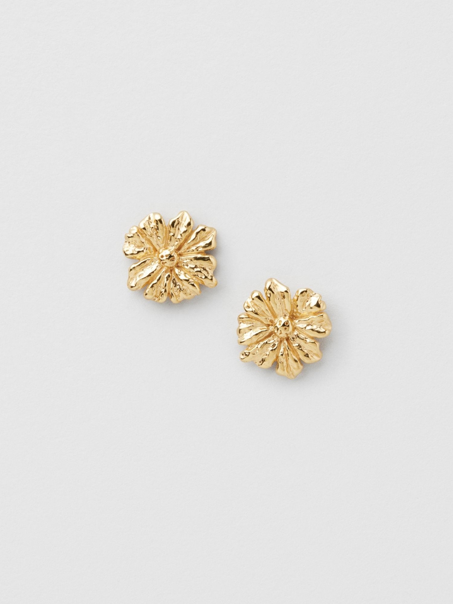 Vintage-inspired flower earrings in the shape of a cosmos flower, made from genuine 925 sterling silver. The gold earrings are plated with genuine 24K gold and have a core of genuine 925 sterling silver. This product is made from 100% recycled silver.