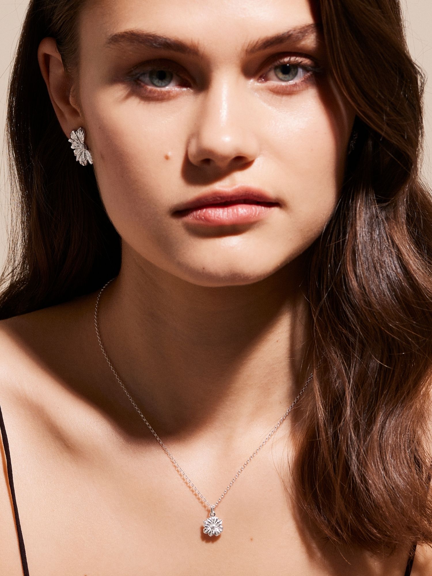 Flower necklace with a vintage-inspired cosmos flower in genuine 925 sterling silver. The gold necklace is plated with genuine 24K gold and has a core of genuine 925 sterling silver. This product is made from 100% recycled silver.