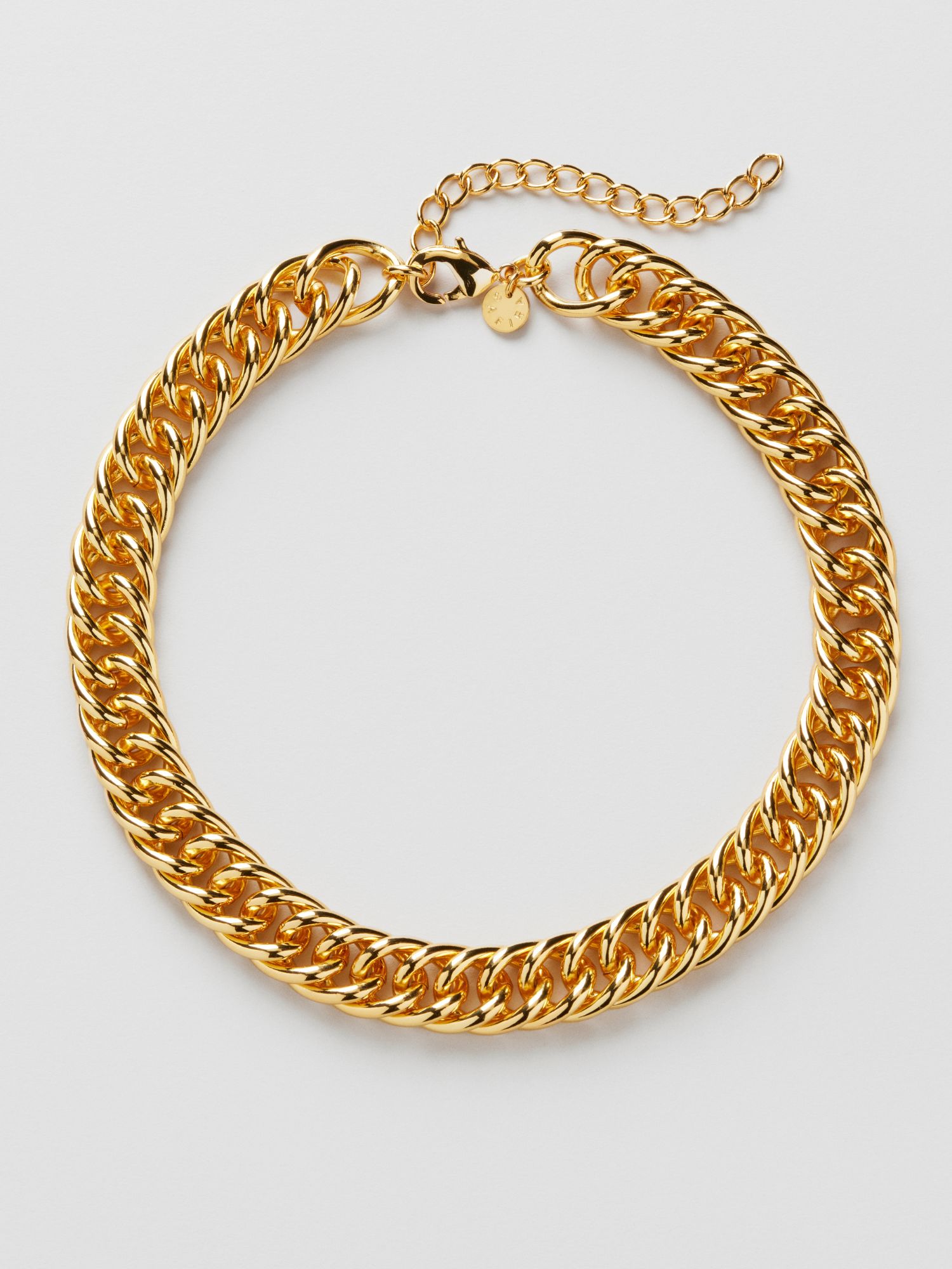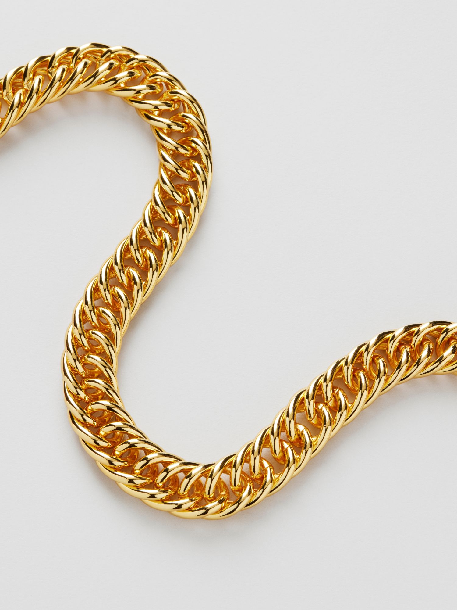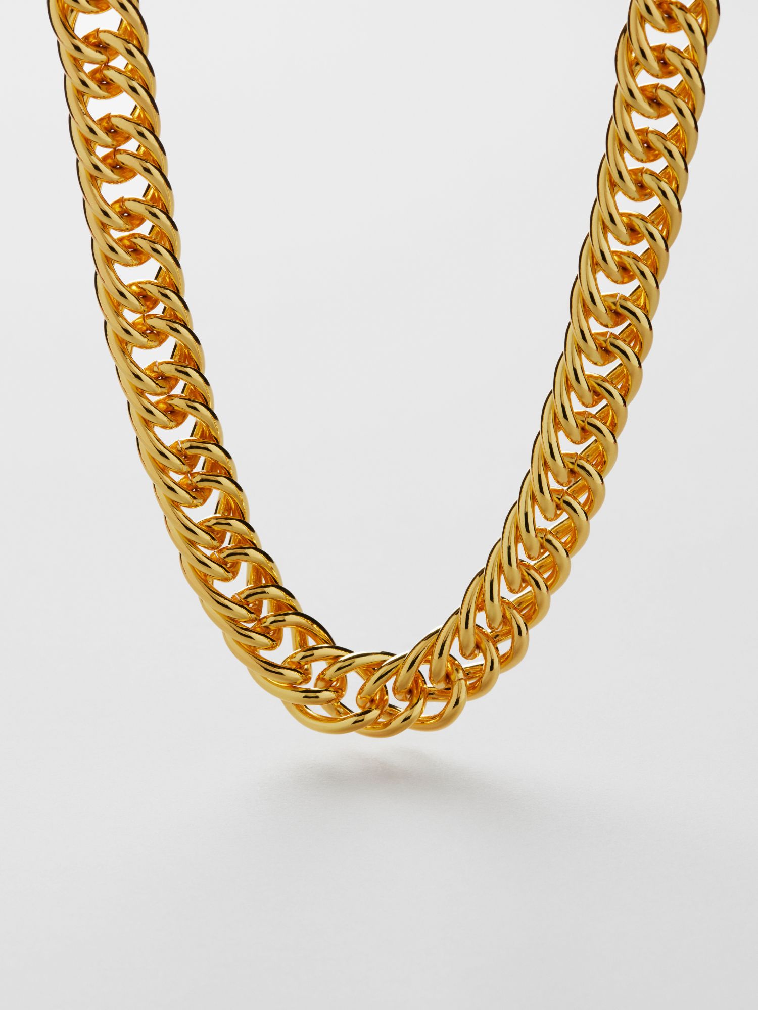 Chunky necklace in a double curb chain. The necklace is plated with genuine 925 sterling silver or genuine 18K gold. The core is made of brass. This jewellery is 100% recycled.