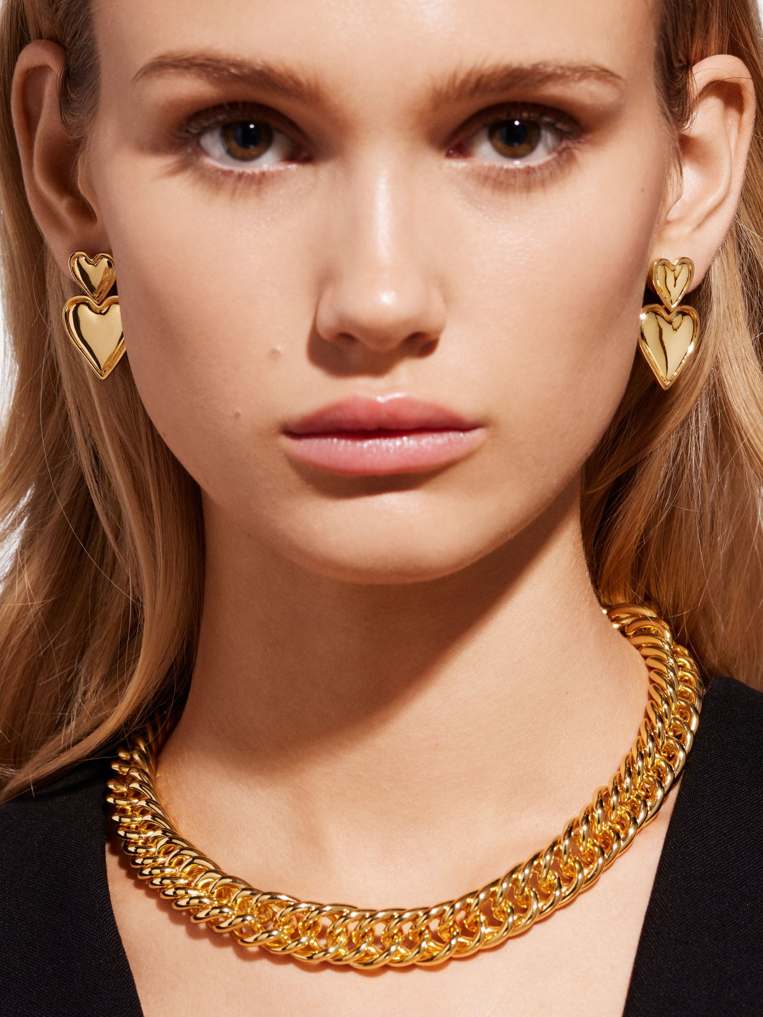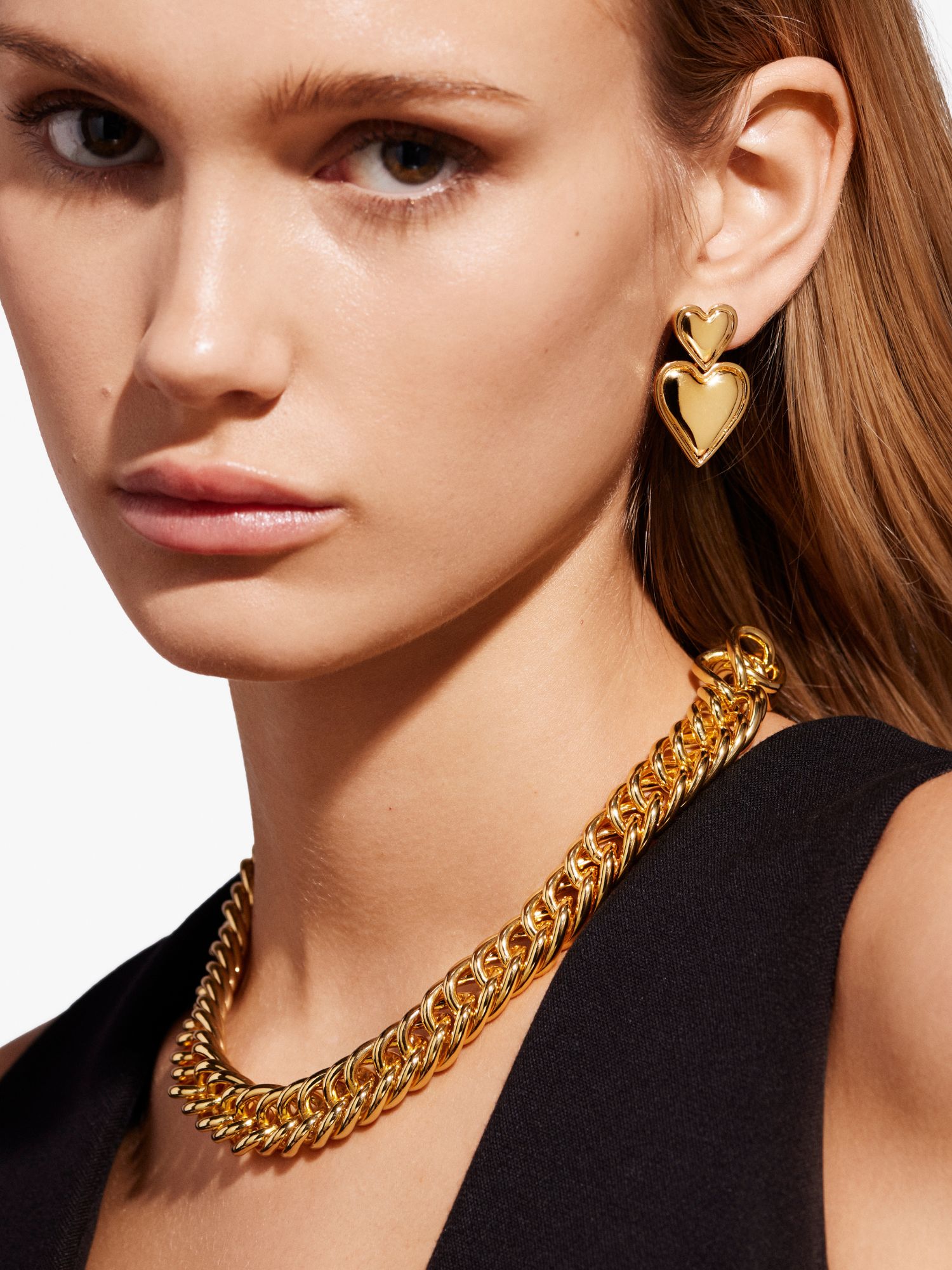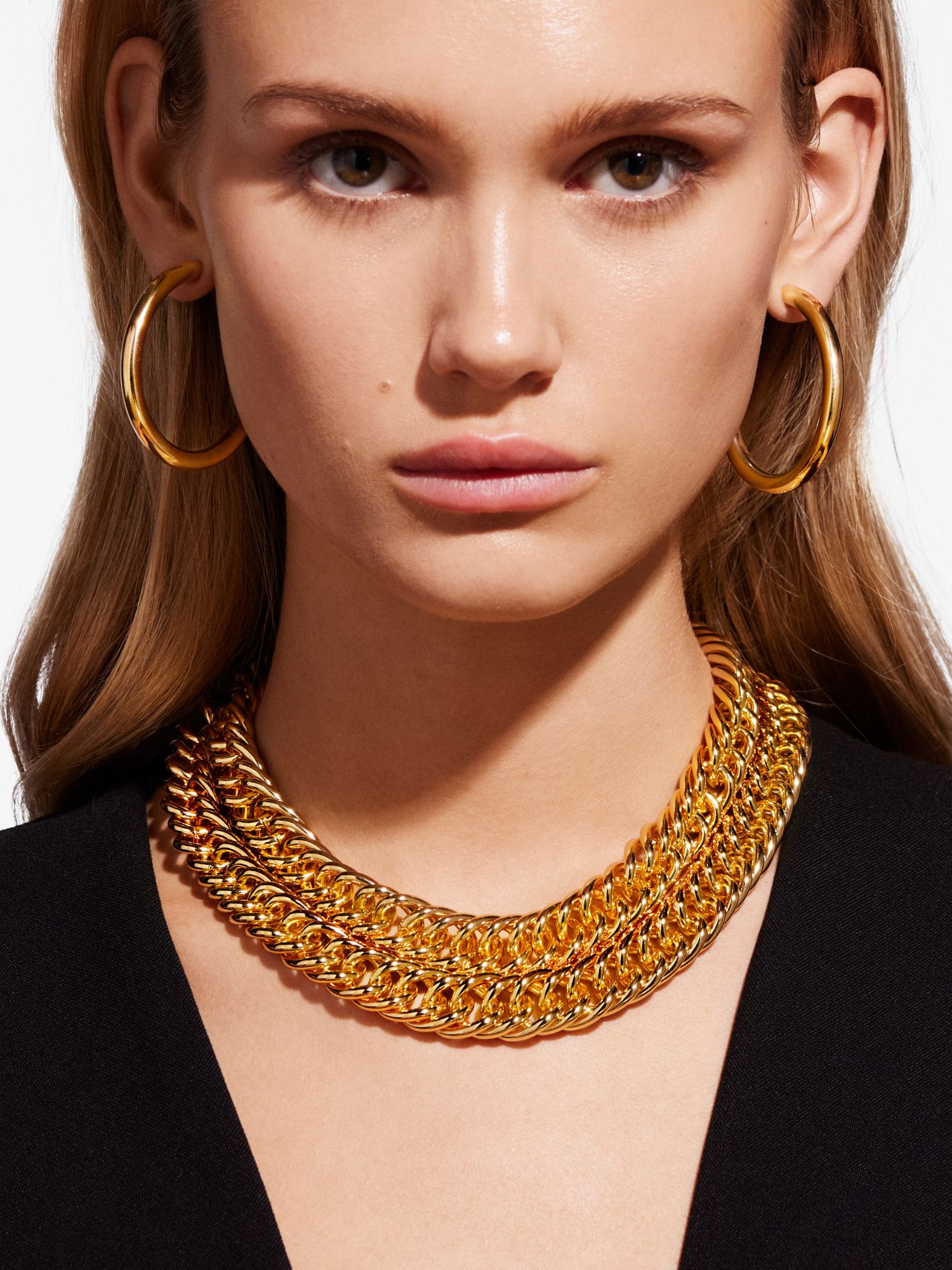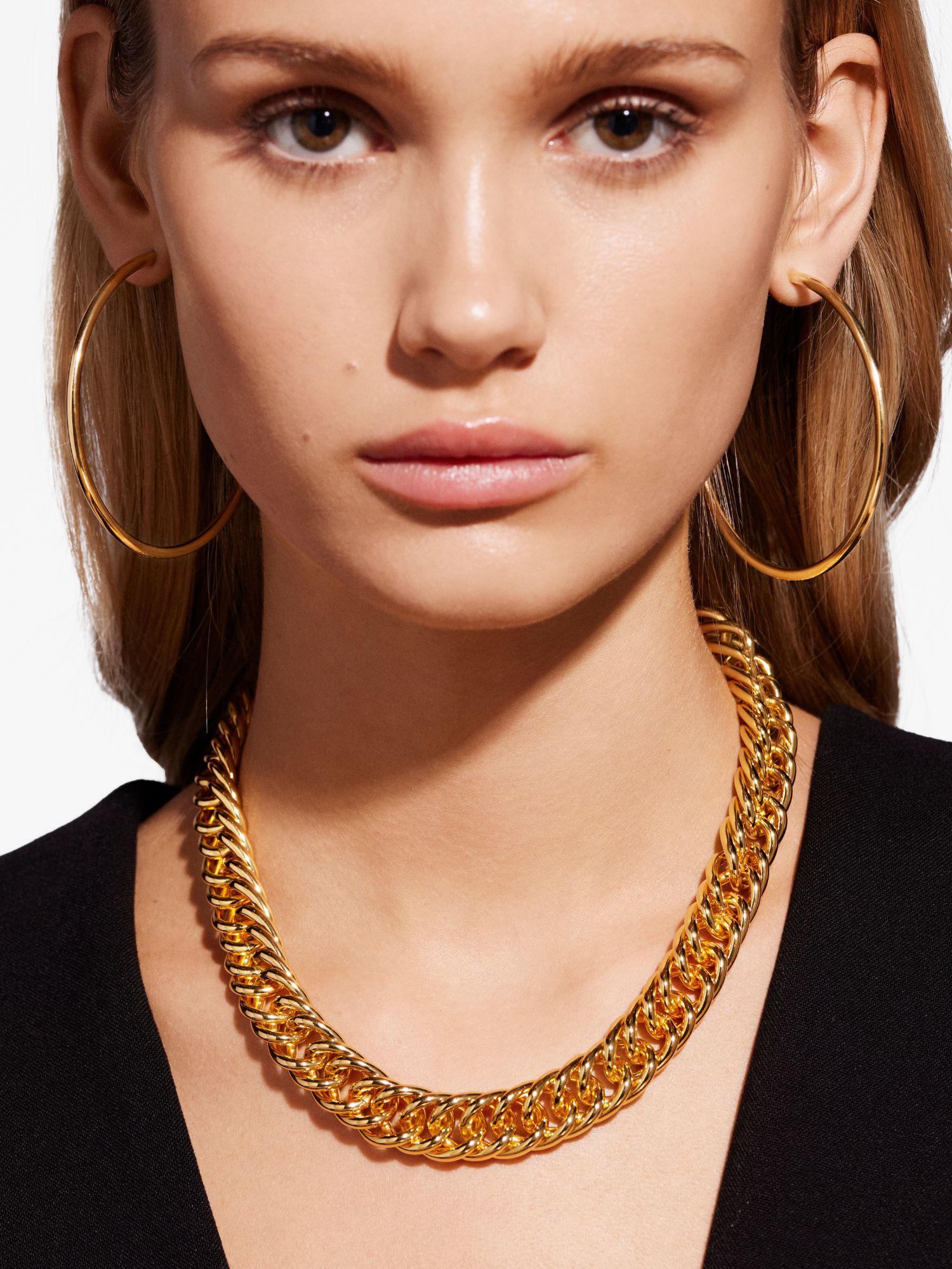Chunky necklace in a double curb chain. The necklace is plated with genuine 925 sterling silver or genuine 18K gold. The core is made of brass. This jewellery is 100% recycled.