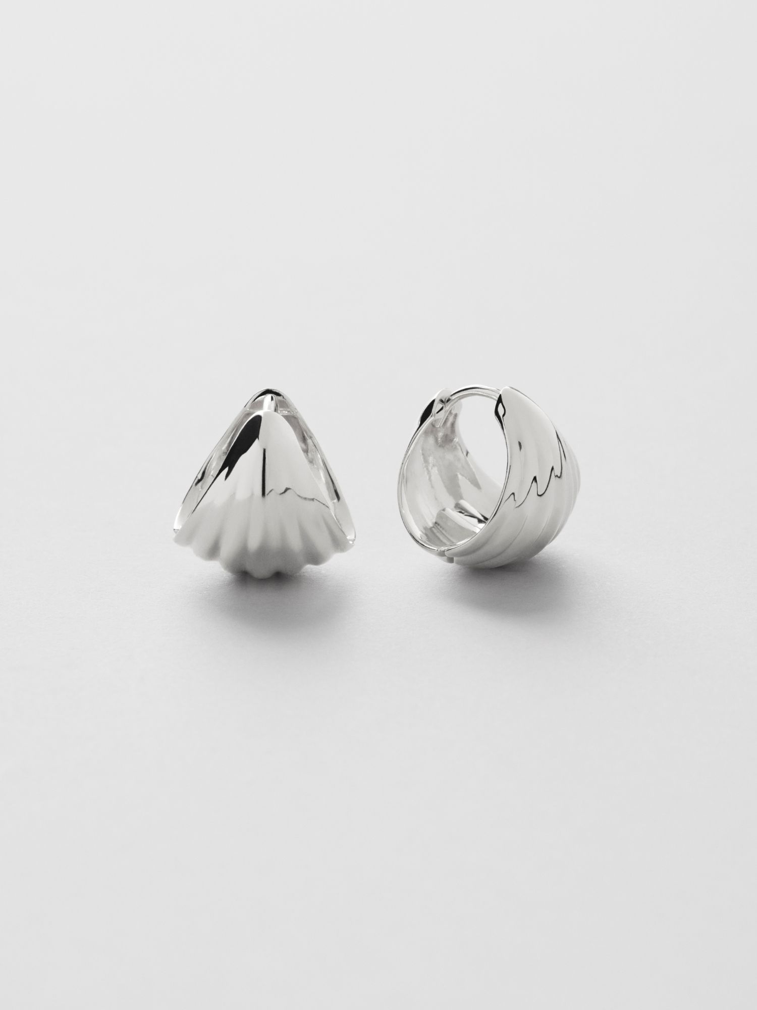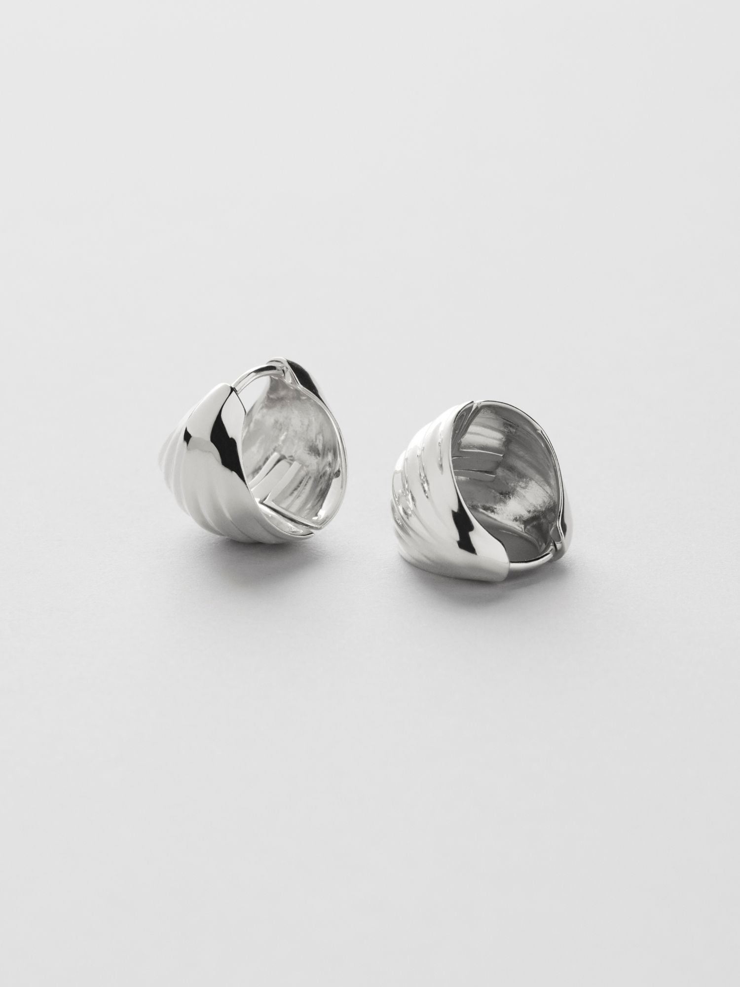 Hoop earrings with a feather-inspired pattern in genuine 925 sterling silver. The gold earrings are plated with genuine 24K gold and have a core of genuine 925 sterling silver. This product is made from 100% recycled silver.