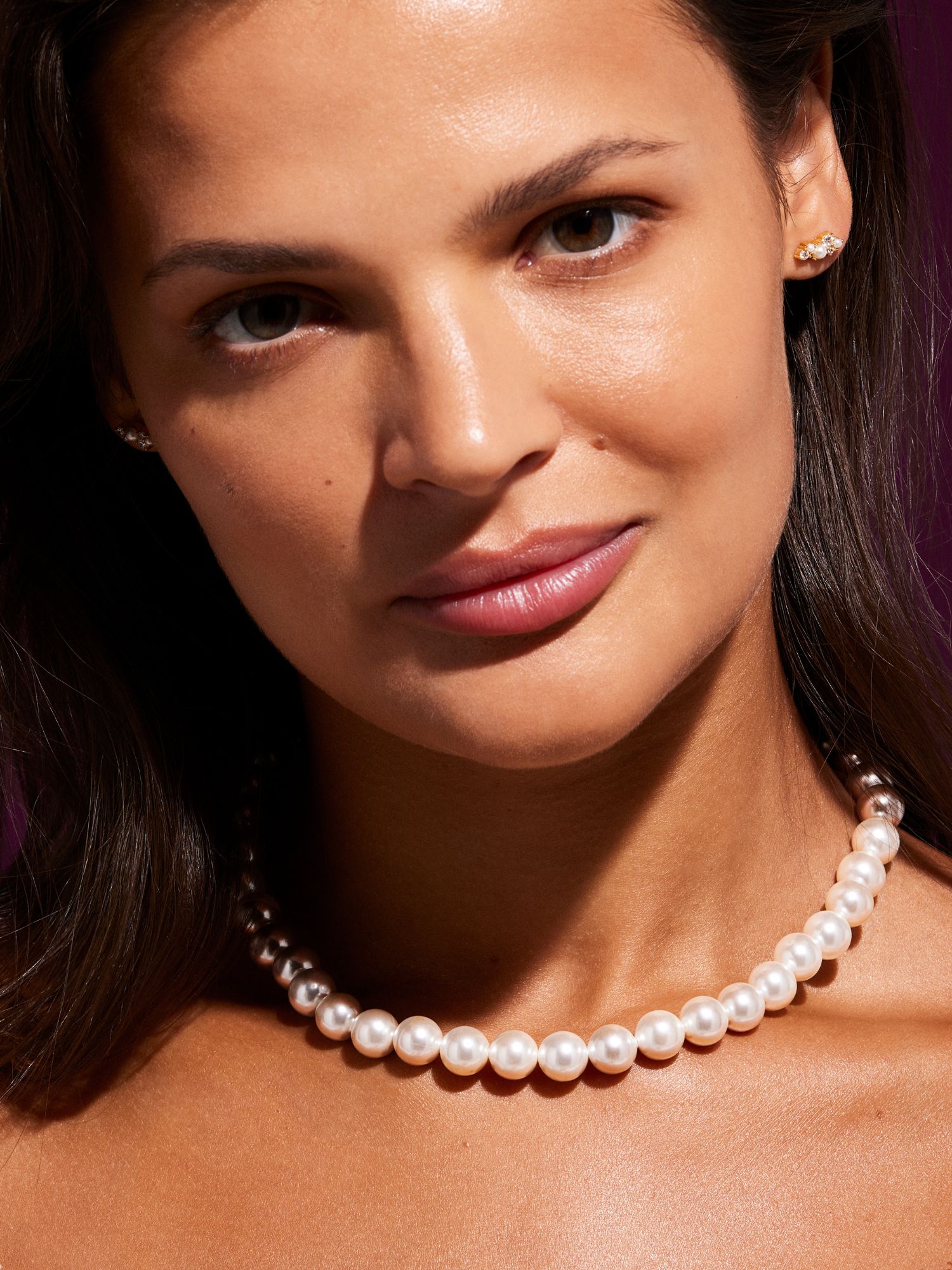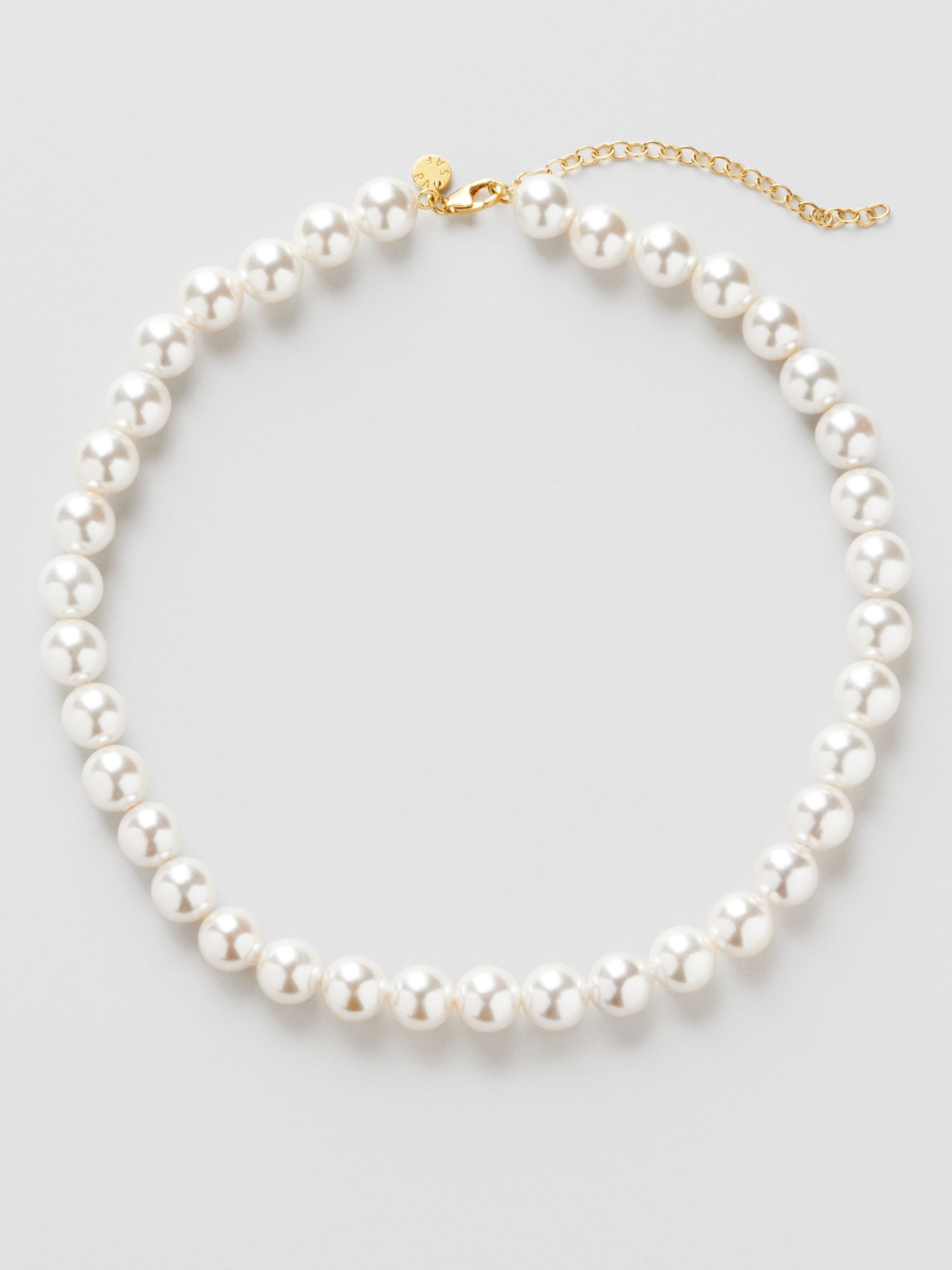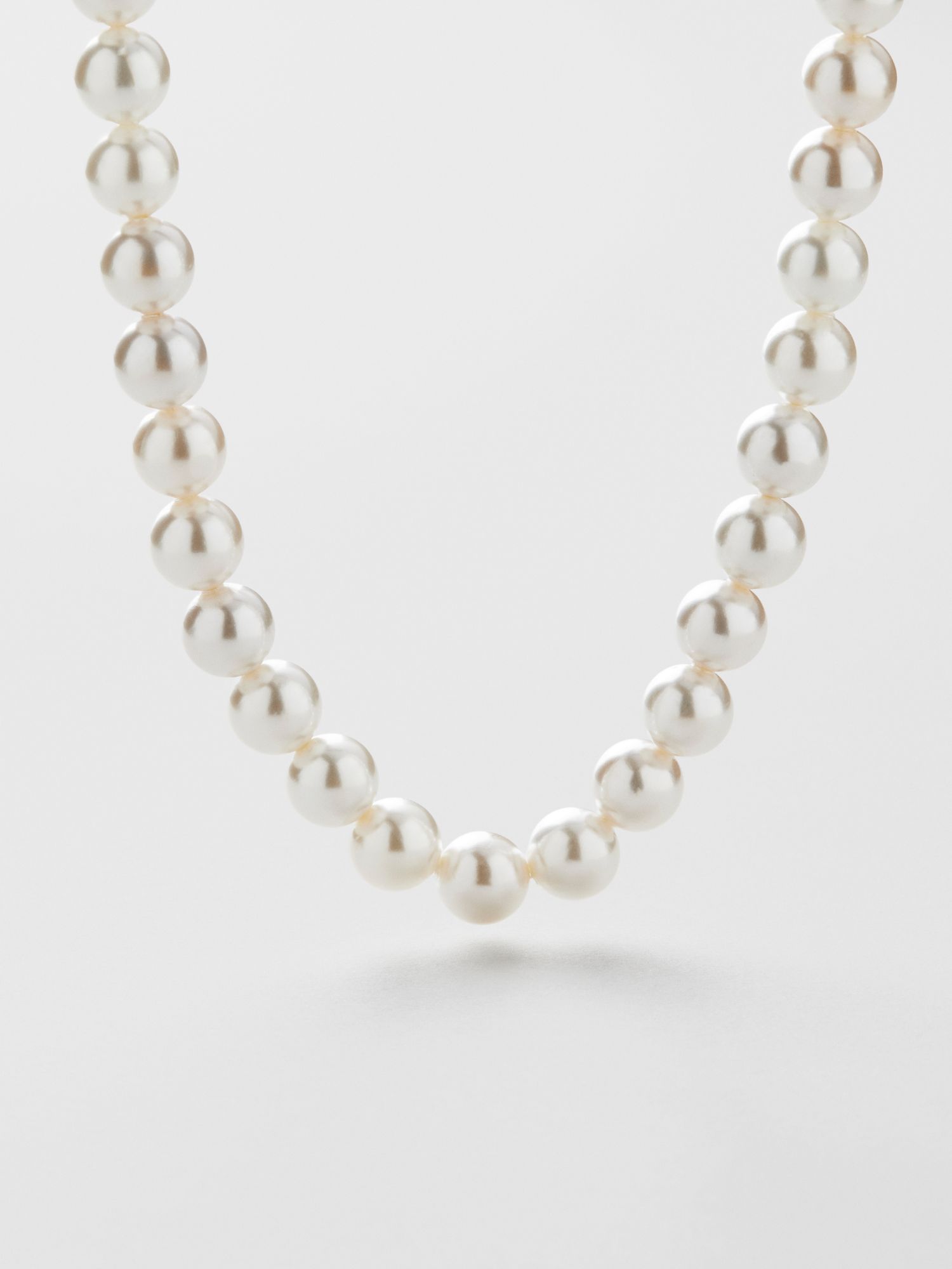 Pearl Necklace in genuine 925 sterling silver with Shell pearls. The clasp is in genuine 925 sterling silver, plated with genuine 24K gold. This product is made of 100% recycled silver.