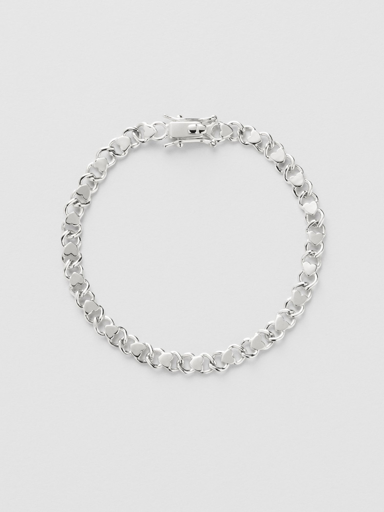 Chain bracelet with heart detail in genuine 925 sterling silver. The gold bracelet is plated with genuine 24K gold and has a core of genuine 925 sterling silver. This product is made of 100% recycled silver.
