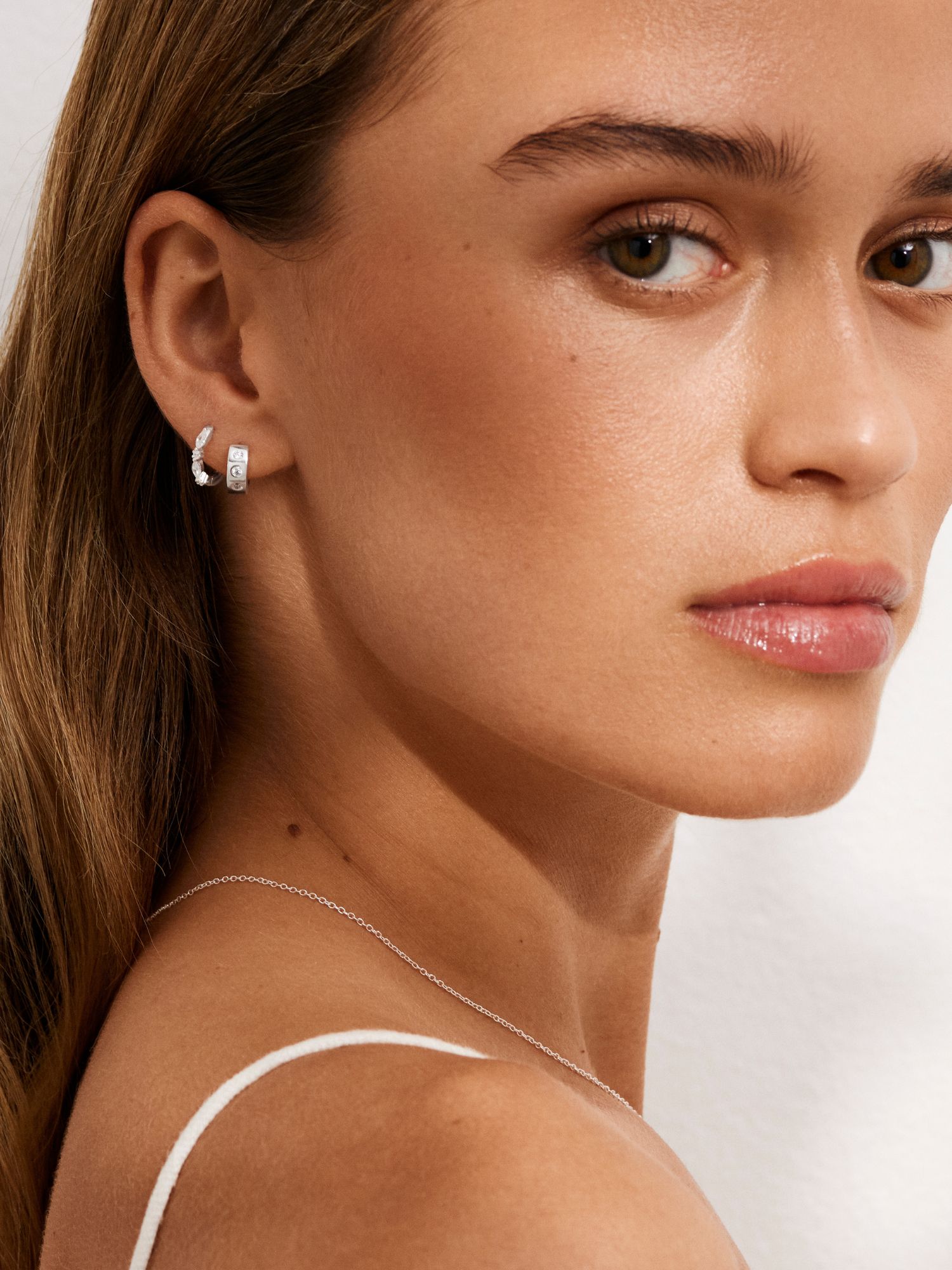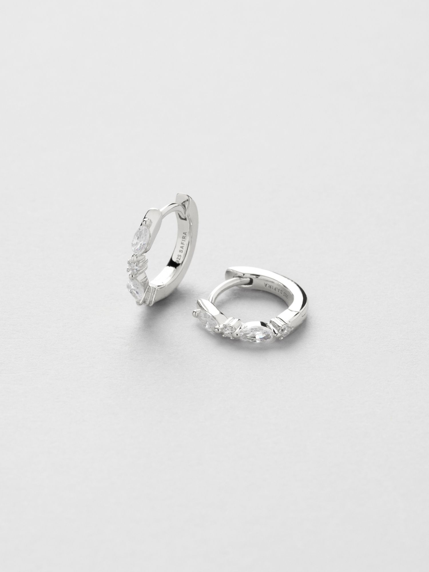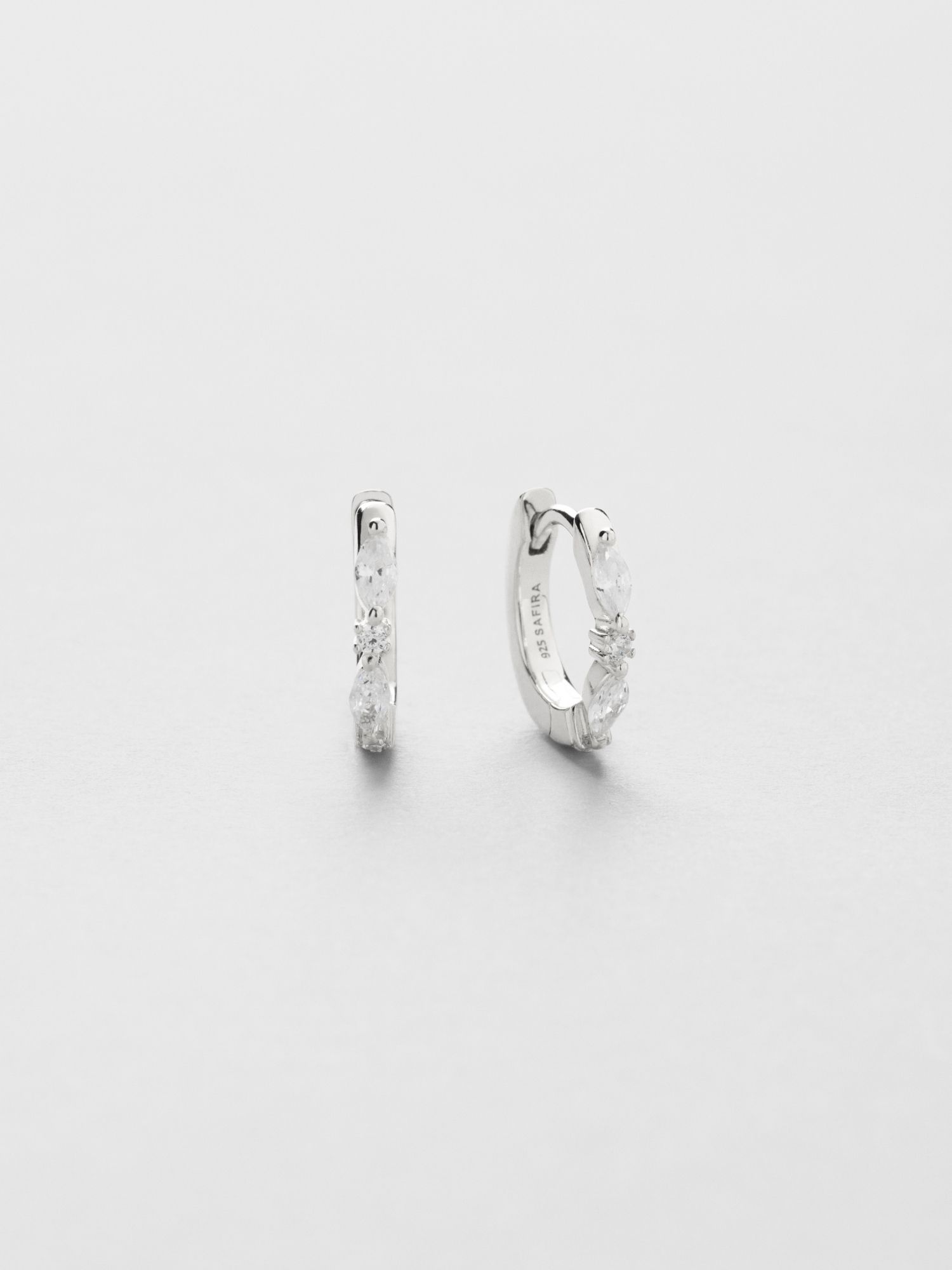 Hoops in genuine 925 sterling silver, adorned with clear Cubic Zirconia stones. The gold earrings are plated with genuine 18K gold and has a core of genuine 925 sterling silver. This product is made from 100% recycled silver.