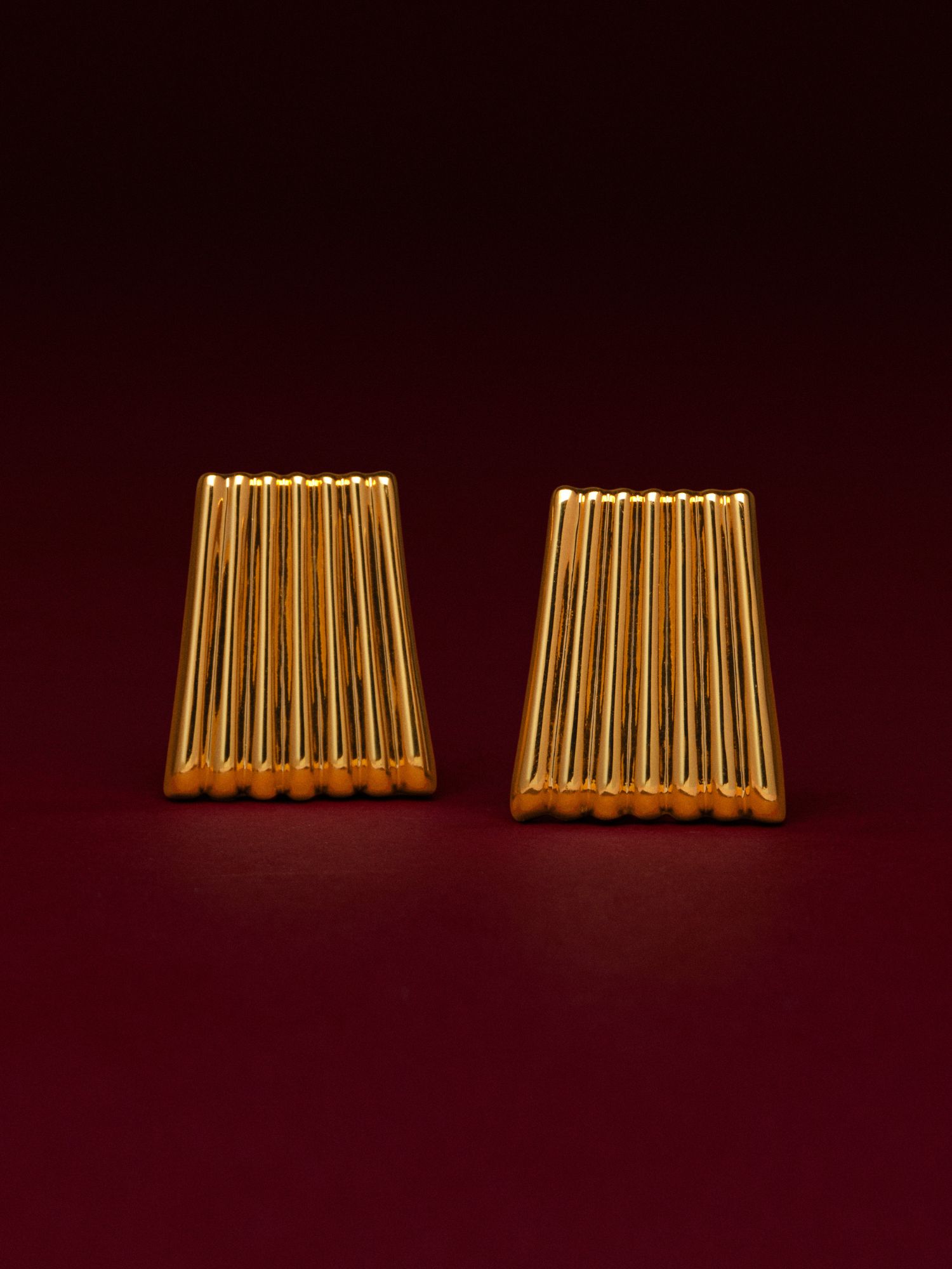 Striped studs glided with genuine 18K gold. The core is made of brass. This jewellery is 100% recycled.