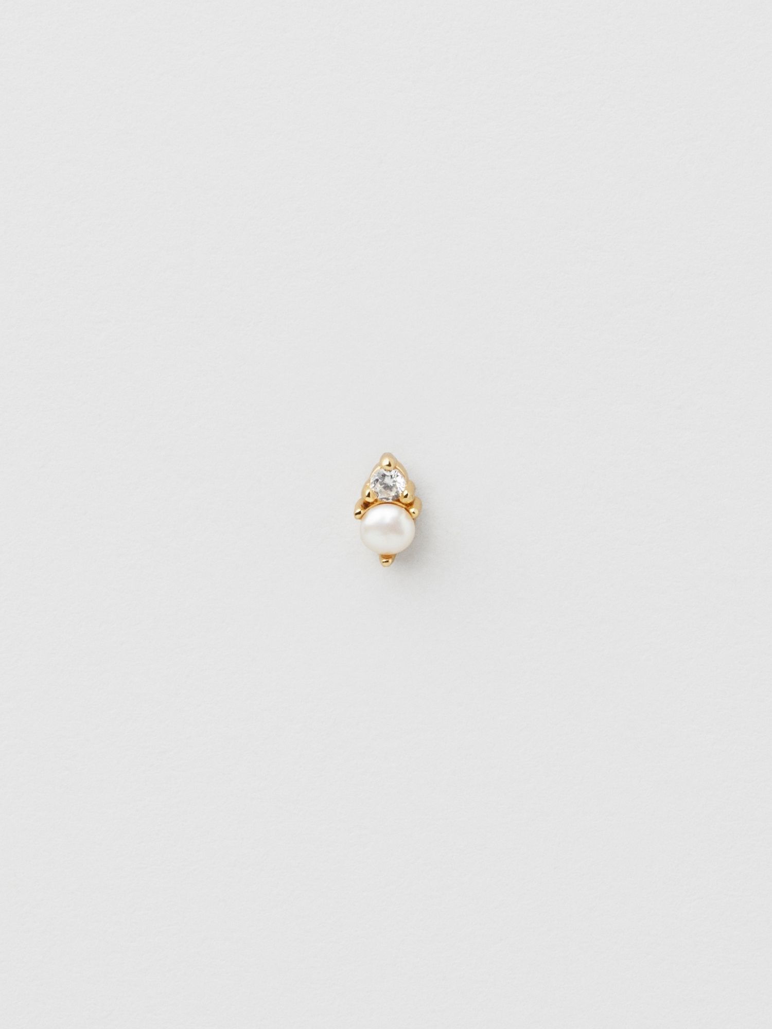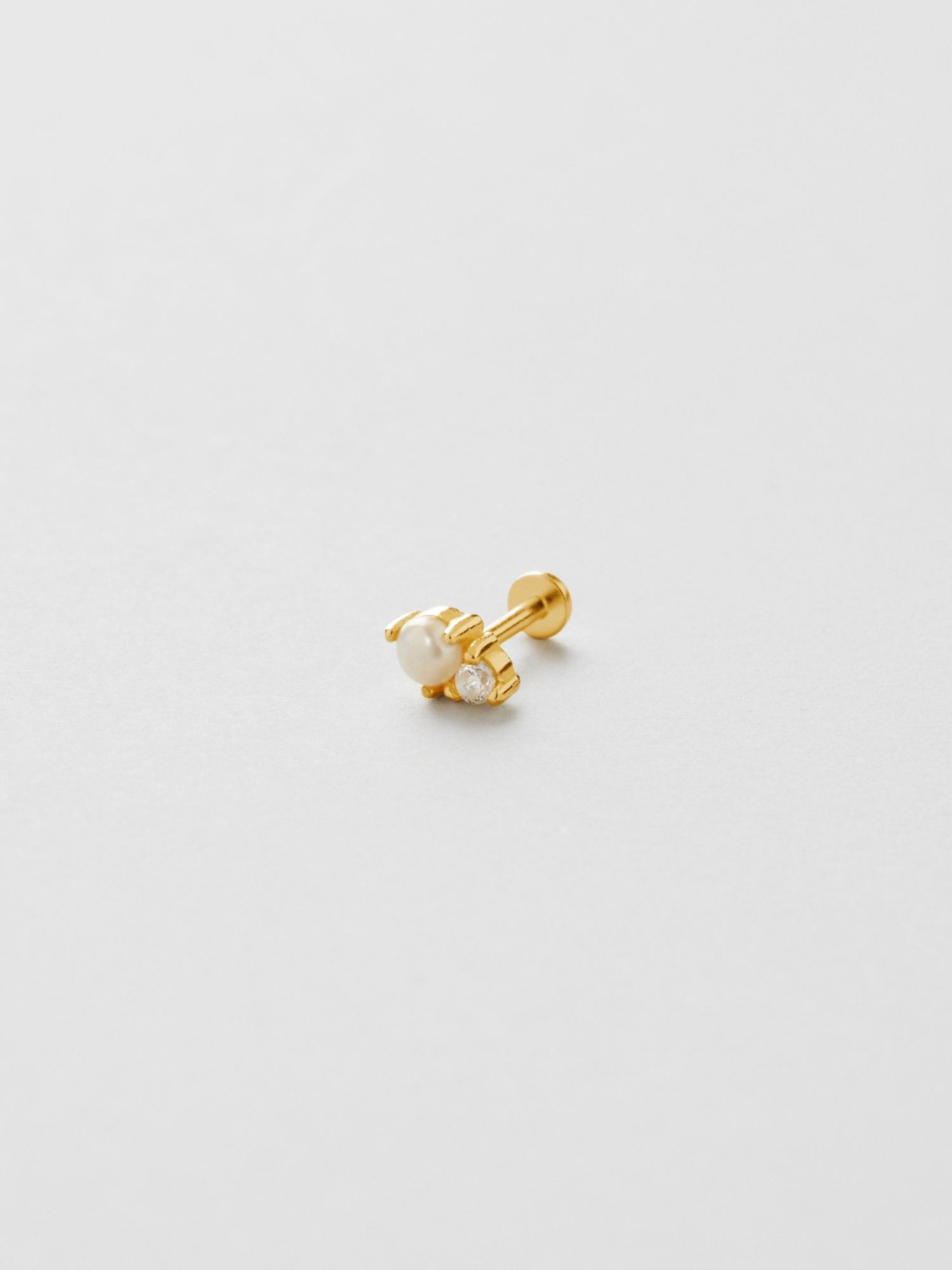 Piercing in genuine 925 sterling silver, decorated with a genuine freshwater pearl and a small clear Cubic Zirconia stone. The gold jewellery is plated with genuine 18K gold and has a core of genuine 925 sterling silver. This product is made of 100% recycled silver. The bar is made of genuine 925 sterling silver. Insert the back part of the piercing through the ear from behind and screw it on with the front part of the piercing.