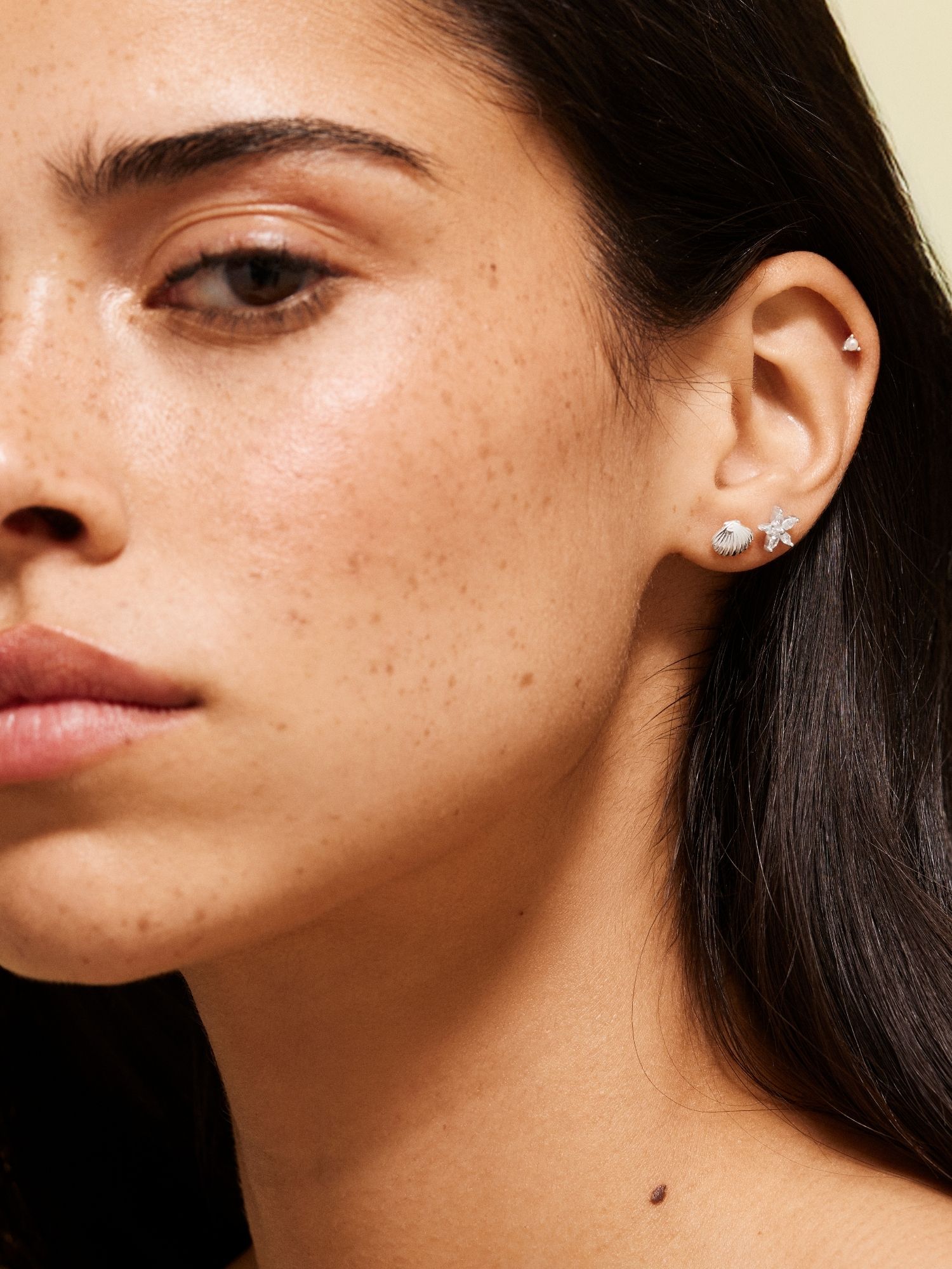 Piercing with a small synthetic pearl in genuine 925 sterling silver. The gold jewellery is plated with genuine 18K gold and has a core of genuine 925 sterling silver. The bar is made of genuine 925 sterling silver. This product is made of 100% recycled silver. Place the back part of the piercing through the ear from behind and screw it together with the front part of the piercing.