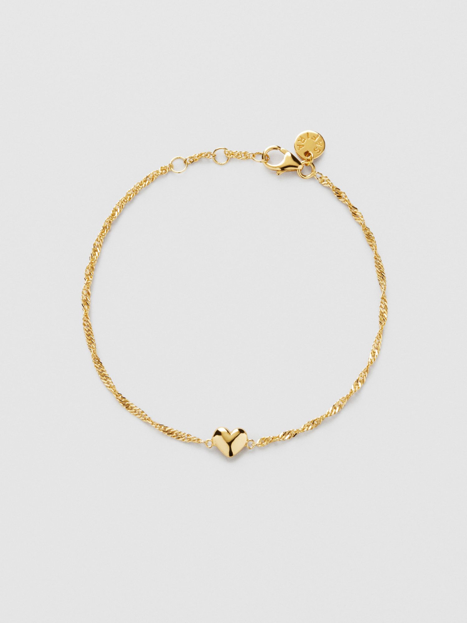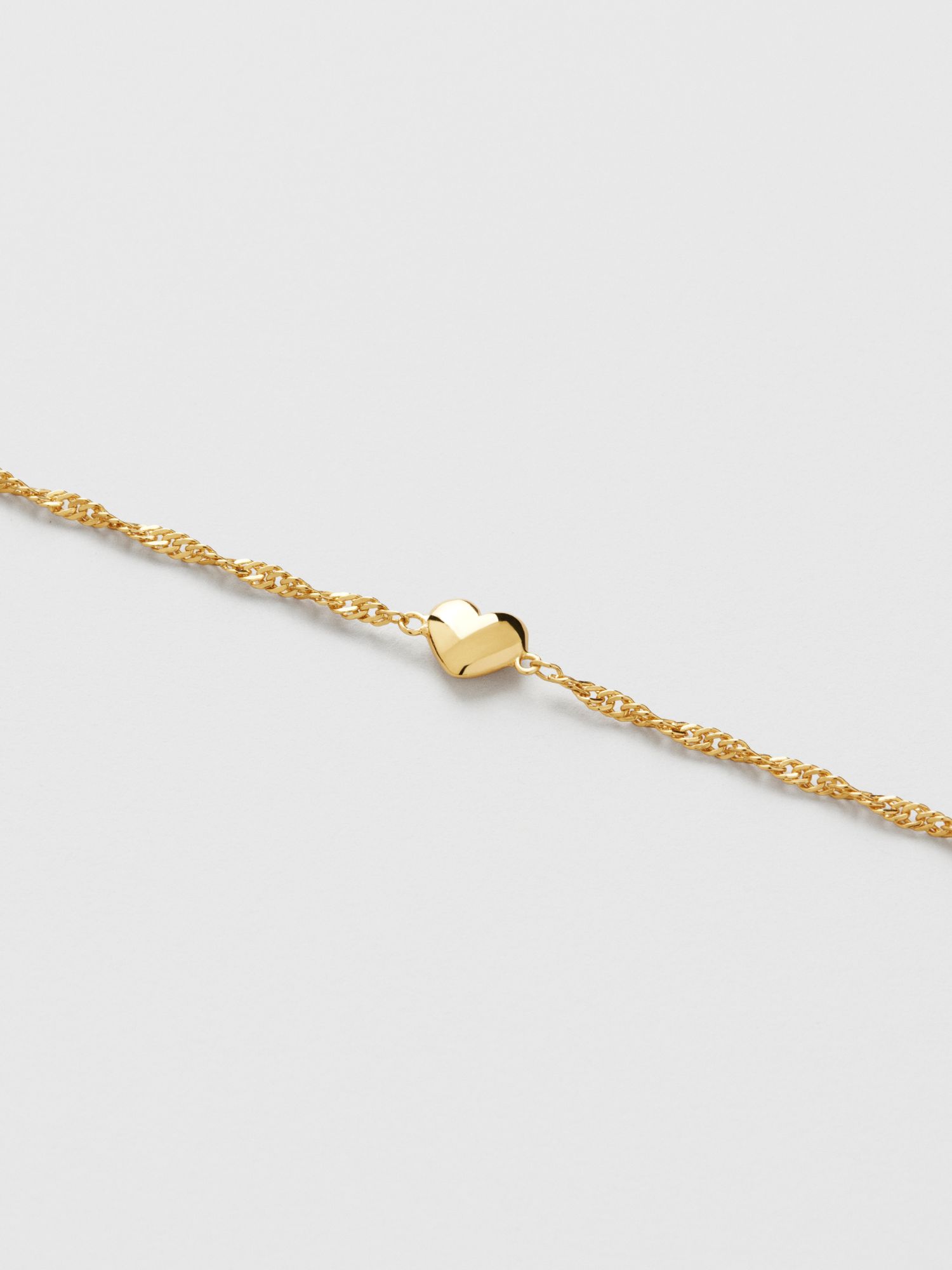 Bracelet with a Singapore chain and a small puffy heart in genuine 925 sterling silver. The gold bracelet is plated with genuine 18K gold and has a core of genuine 925 sterling silver. This product is made from 100% recycled silver.