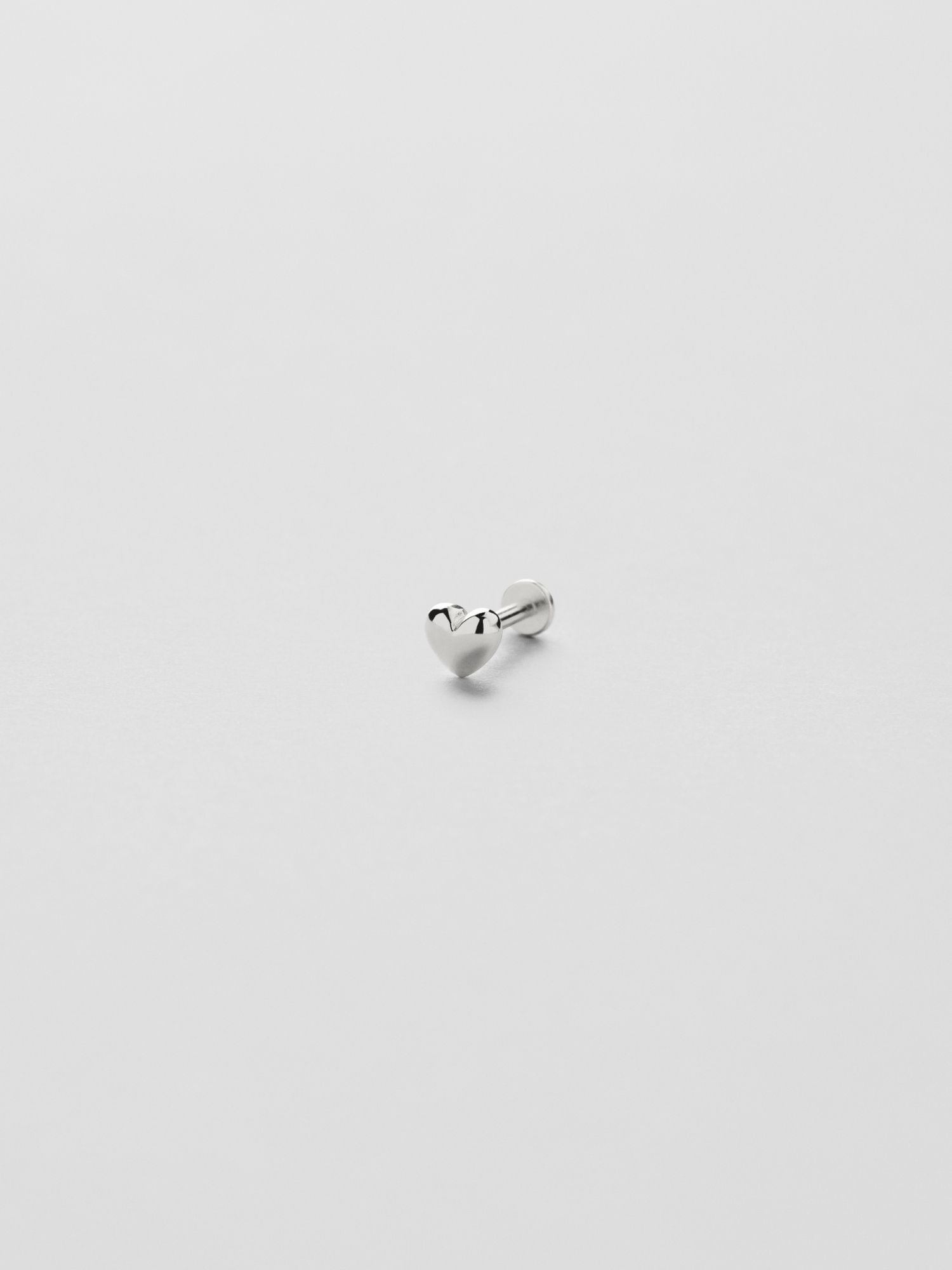 Piercing with a puffy heart in genuine 925 sterling silver. The gold jewellery is plated with genuine 18K gold and has a core of genuine 925 sterling silver. The bar is made of genuine 925 sterling silver. This product is made of 100% recycled silver. Place the back part of the piercing through the ear from behind and screw it together with the front part of the piercing.
