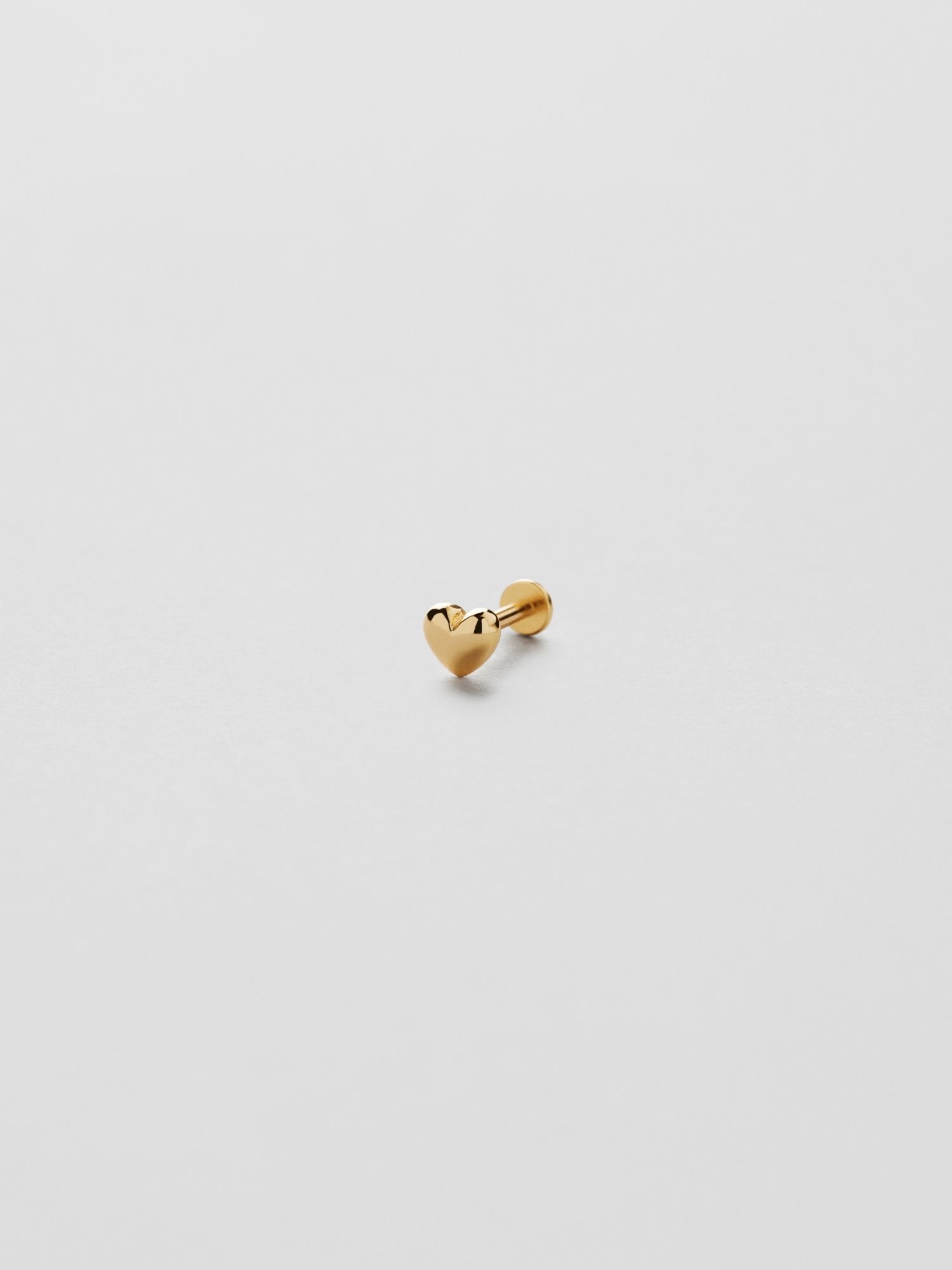 Piercing with a puffy heart in genuine 925 sterling silver. The gold jewellery is plated with genuine 18K gold and has a core of genuine 925 sterling silver. The bar is made of genuine 925 sterling silver. This product is made of 100% recycled silver. Place the back part of the piercing through the ear from behind and screw it together with the front part of the piercing.