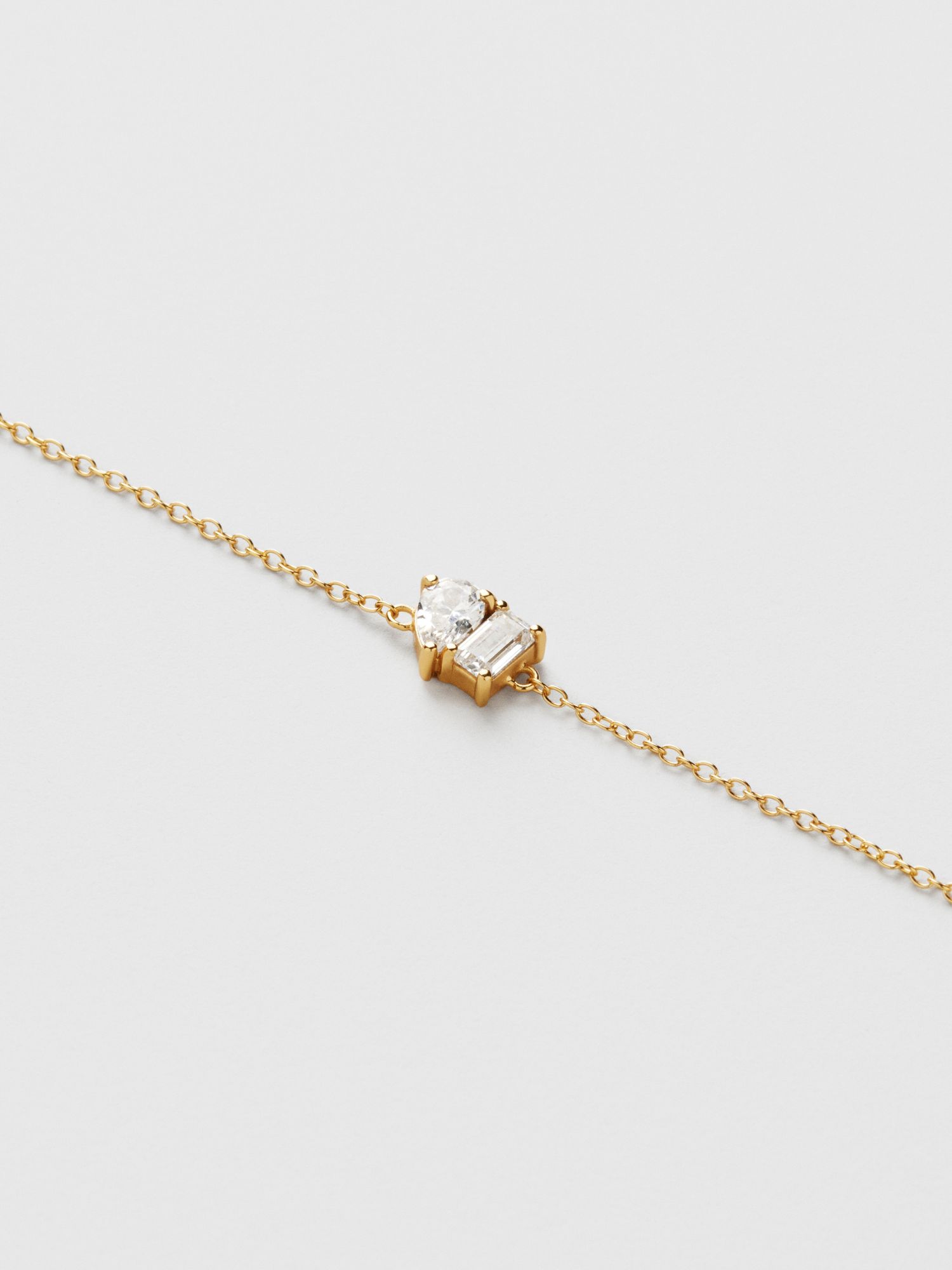 Bracelet in genuine 925 sterling silver, decorated with two clear Cubic Zirconia stones. Toi et Moi means "You and Me" in French. The gold bracelet is plated with genuine 18K gold and has a core of genuine 925 sterling silver. This product is made from 100% recycled silver.