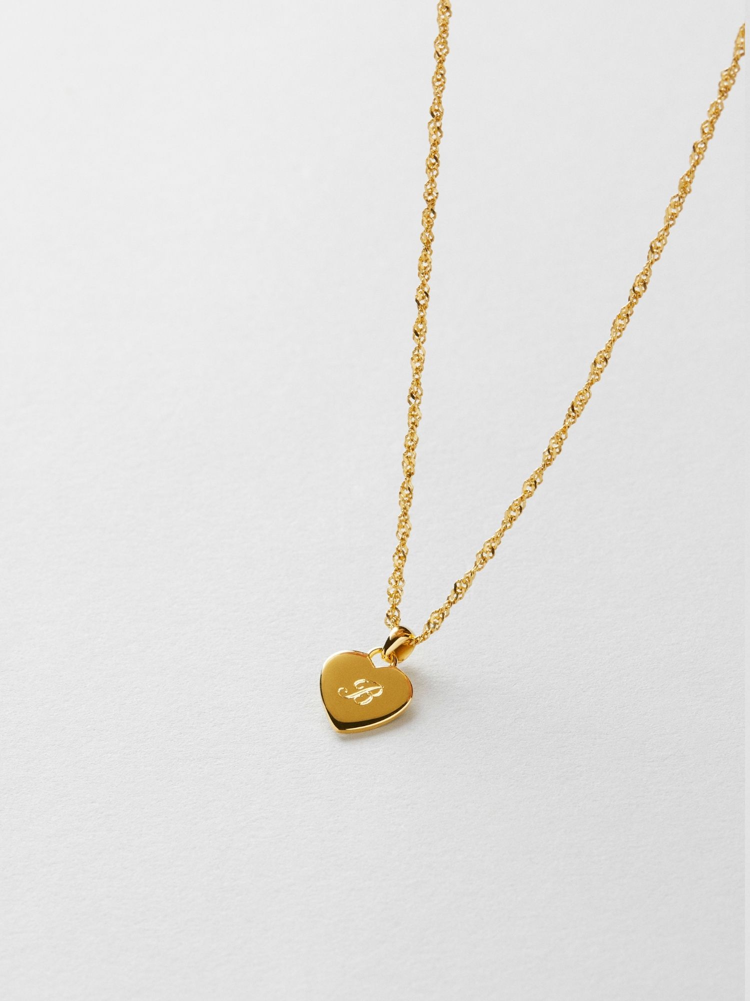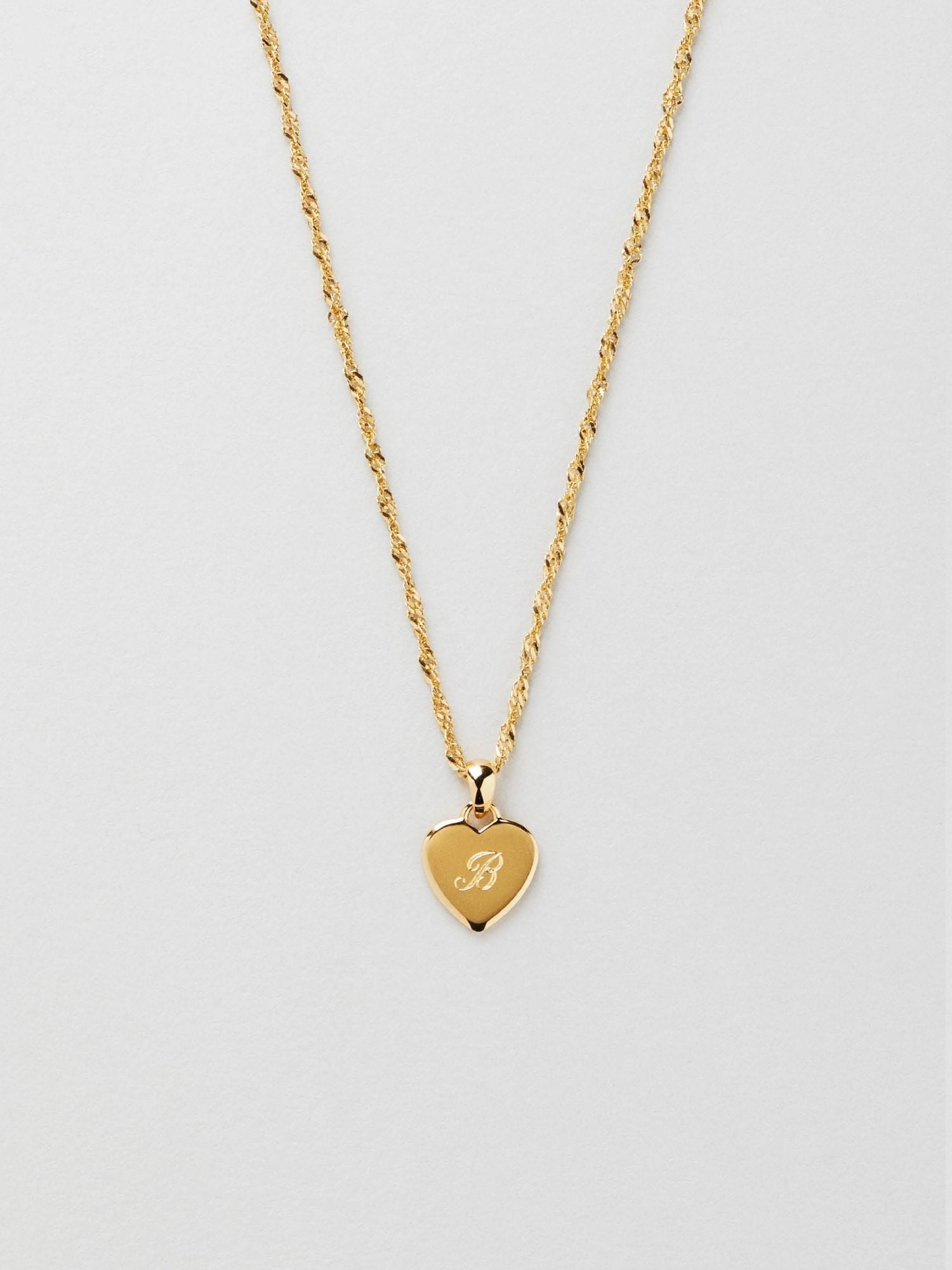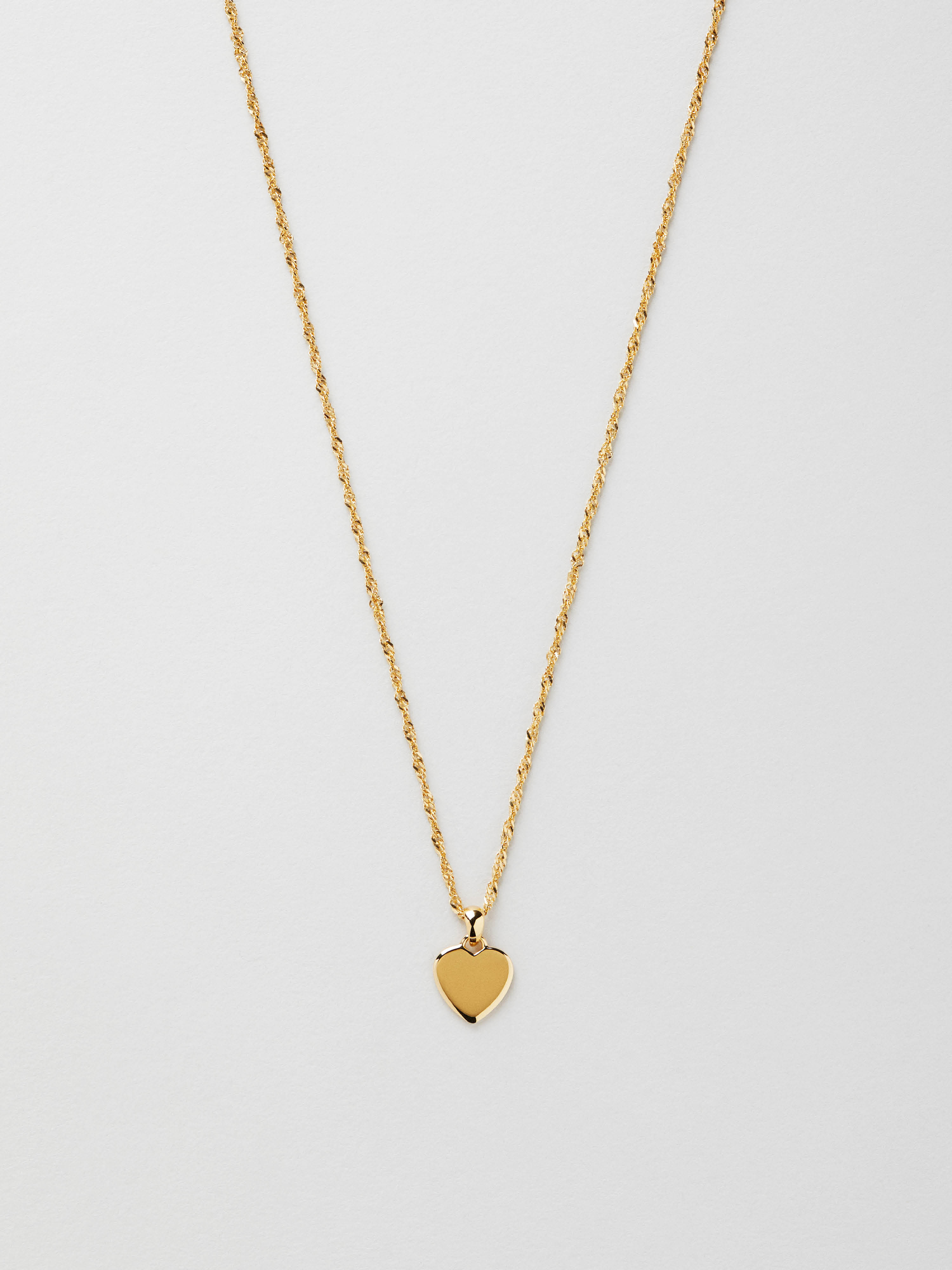 Engravable heart necklace in a Singapore chain made of genuine 925 sterling silver. The gold necklace is plated with genuine 24K gold and has a core of genuine 925 sterling silver. Today, more than 85% of our jewellery is made from recycled genuine silver.