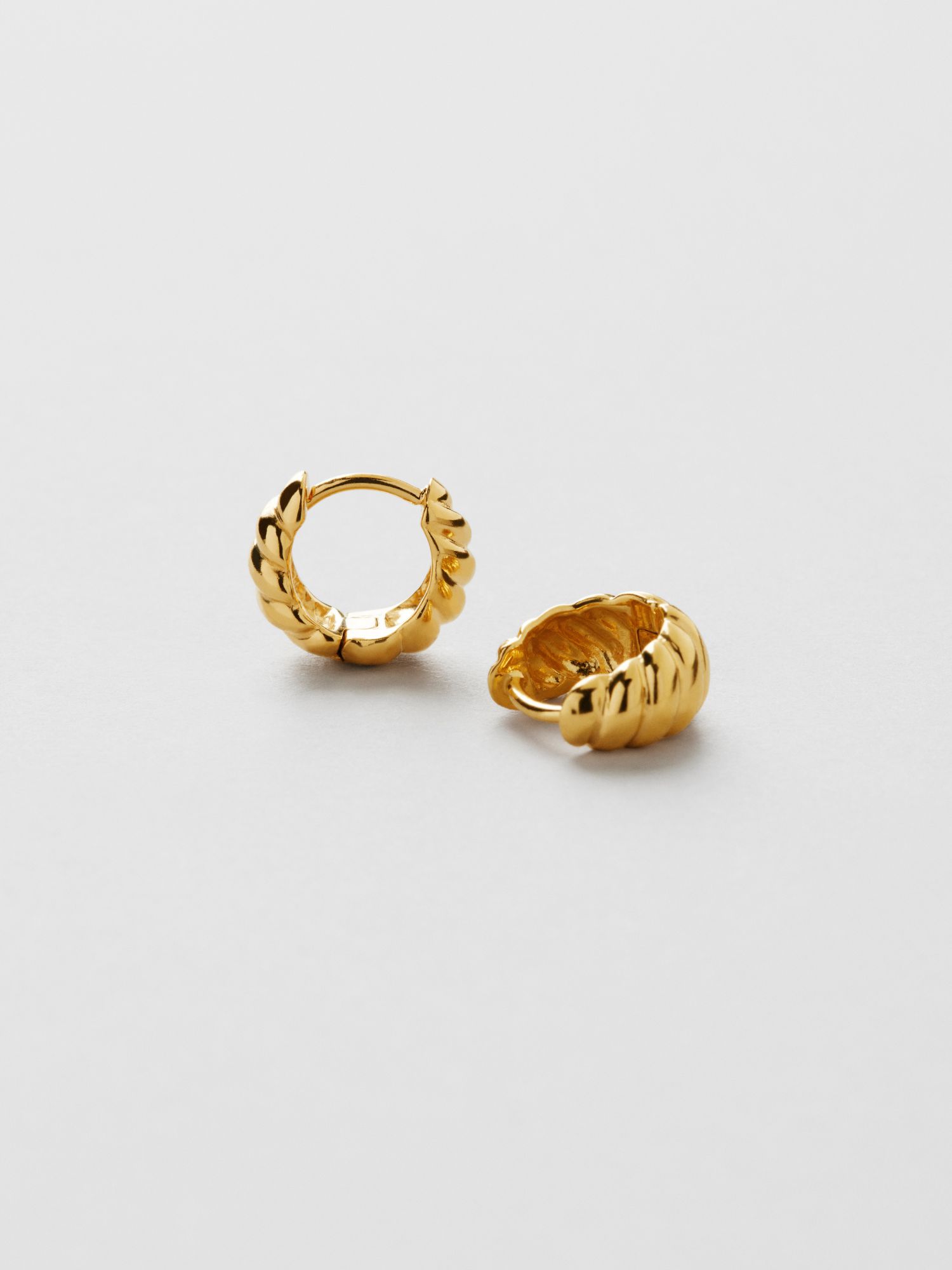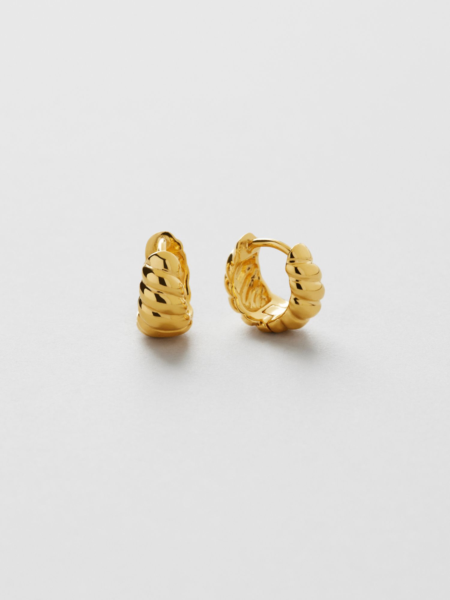Twisted hoops in genuine 925 sterling silver. The gold earrings are plated with genuine 24K gold and have a core of genuine 925 sterling silver. This product is made from 100% recycled silver.